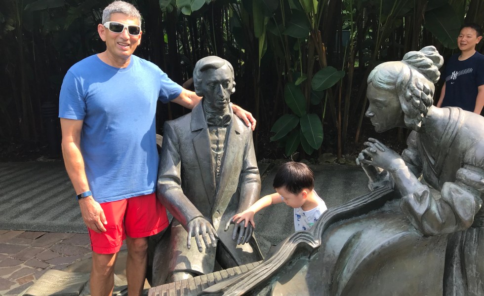 On a recent to Singapore I met Chopin in the botanical gardens. A gift from the Polish government, he was busily putting the finishing touches to, or maybe just playing, the F sharp minor polonaise.