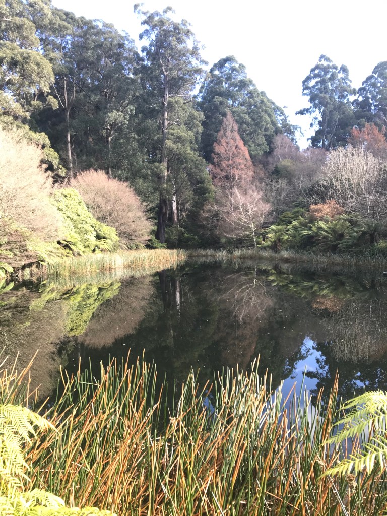 We left the gardens to tackle the round trip from Olinda to Sassafras and back. According to the instructions, we’d have ahead of us a seven-kilometre arduous walk, mostly through forest. We started by walking the length of Range road, a residential street of forest fringe dwellers. It ended where the forest began. We were soon dwarfed by gigantic eucalypts. Nature swallowed us up, along with a few other similarly afflicted trekkers. We descended deep down into tranquil, perpetual shade. Friendly forest sounds instilled calmness, despite my expectation of a steep climb ahead.