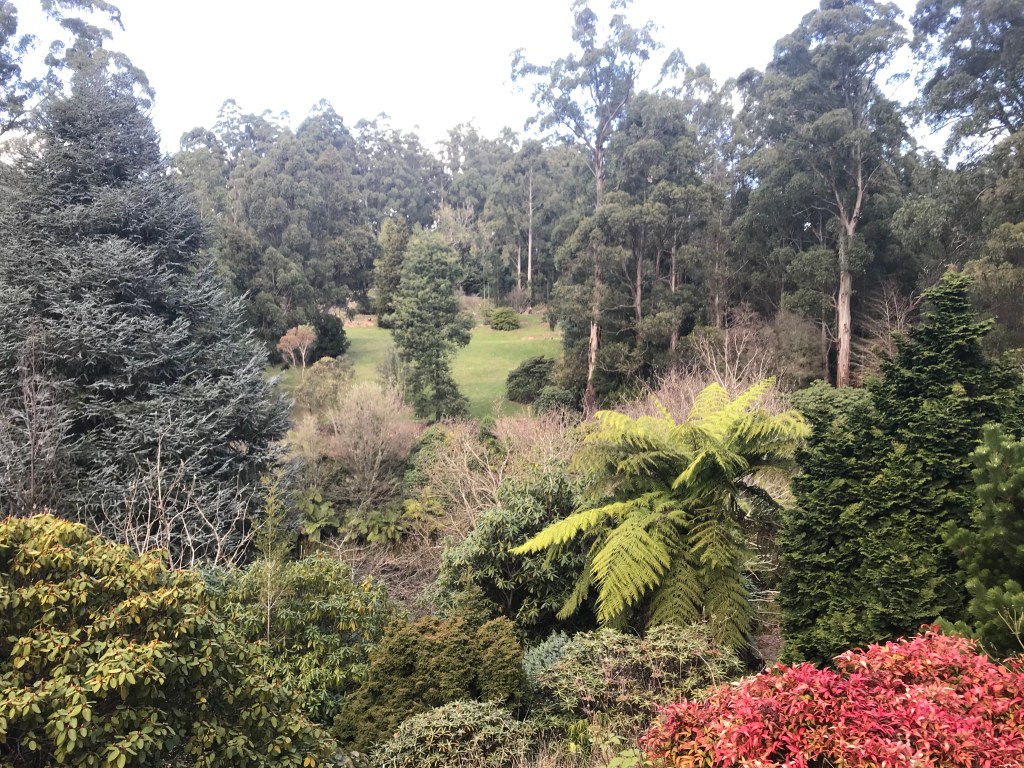 As they say, in trekking every descent leads to an ascent. When it arrived, we had no choice but to take it in our stride. Fortunately, our walking and climbing legs are sturdy, courtesy of many, many kilometres wandering uphill and downhill. Like Olinda, Sassafras was bursting with people defying social distancing to take advantage of the public holiday and glorious cold but sunny weather. We found a roadside spot on a horizontal tree trunk to have lunch. The walk back to Olinda, along a different path, entailed an unrelenting steep climb to Range Road.