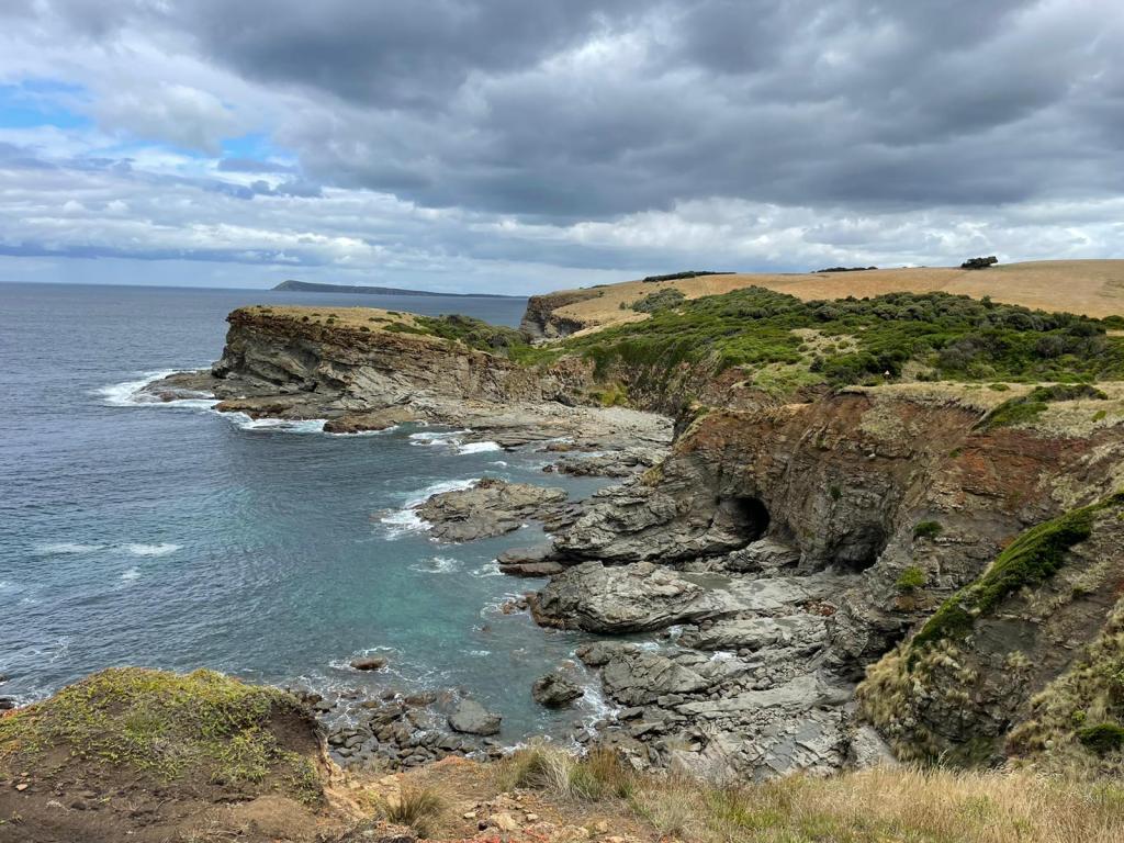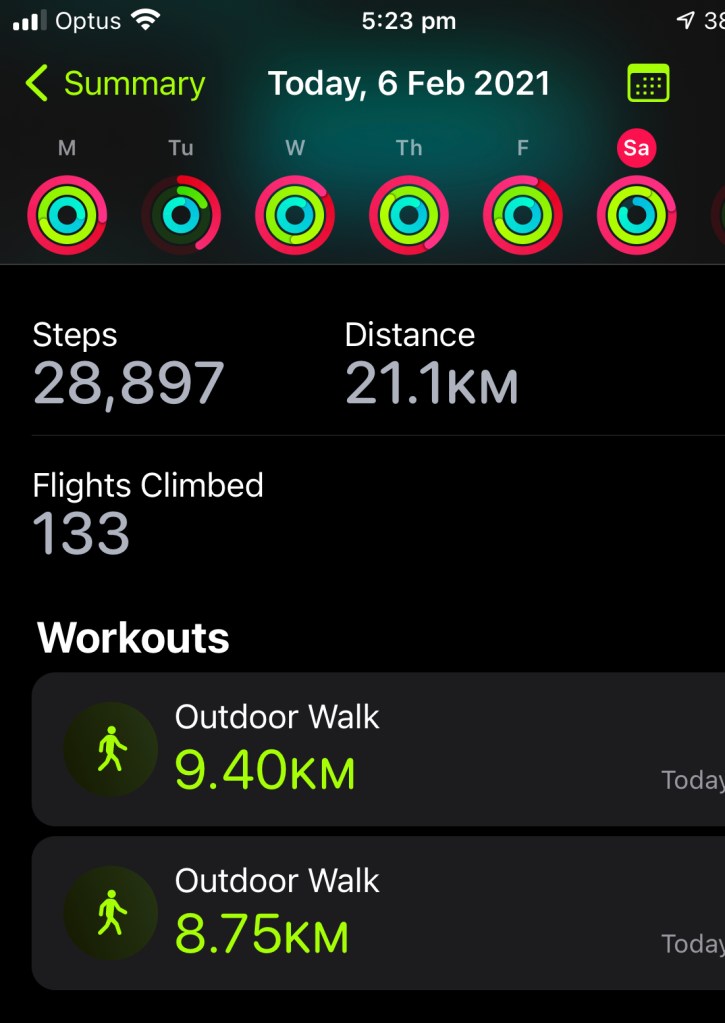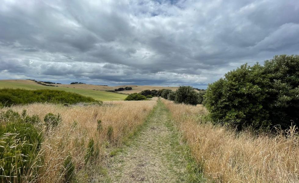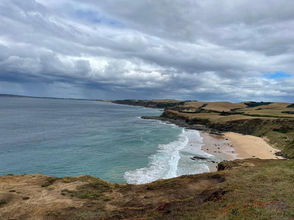 A most picturesque eight-kilometre undulating track along a cliff-top foreshore, with one beach descent where for close to half a kilometre you squelch in soft sand underfoot. It is not a circuit, which meant that we settled on a sixteen-kilometre trek. The track was quite level at the start, at least where we started, and finished, at the Kilcunda end. But once the hills began, they never ended. I was acutely aware that every descent would be a climb on the way back. Thankfully the weather was cool. The strong sea breeze in our faces on the first leg pushed us back a little bit but also kept the flies at bay. The absence of that breeze on the way back brought out the flies in swarms that bothered us continually. I was whacked at the end.