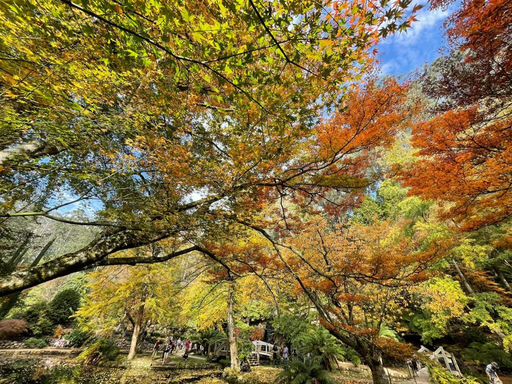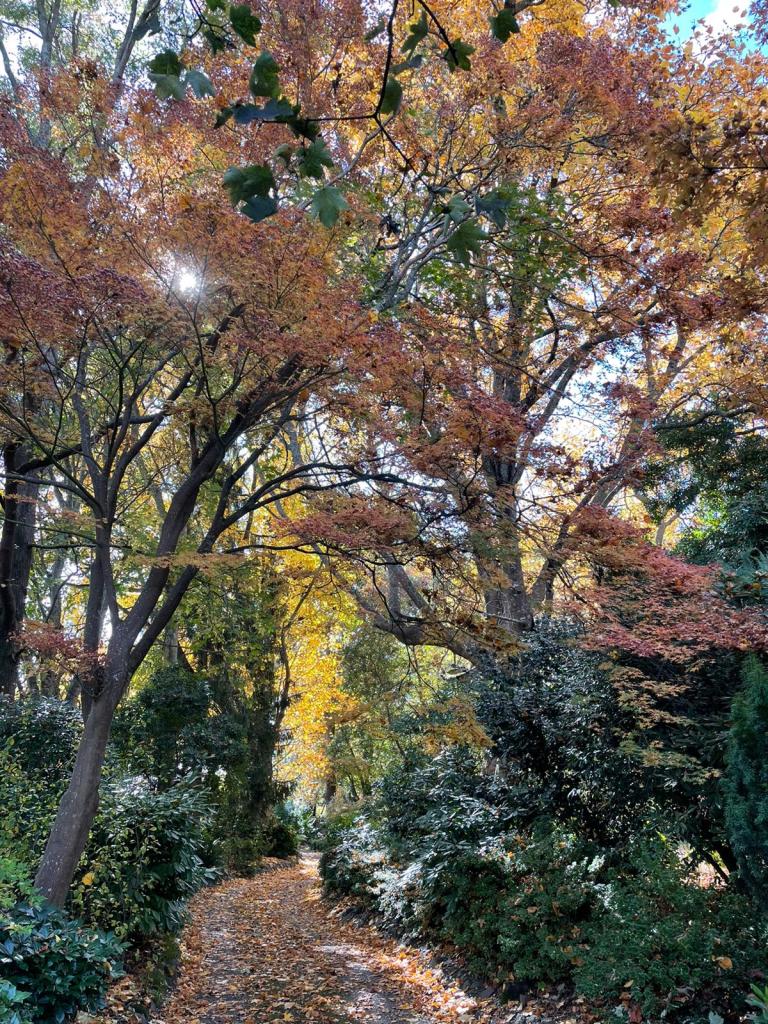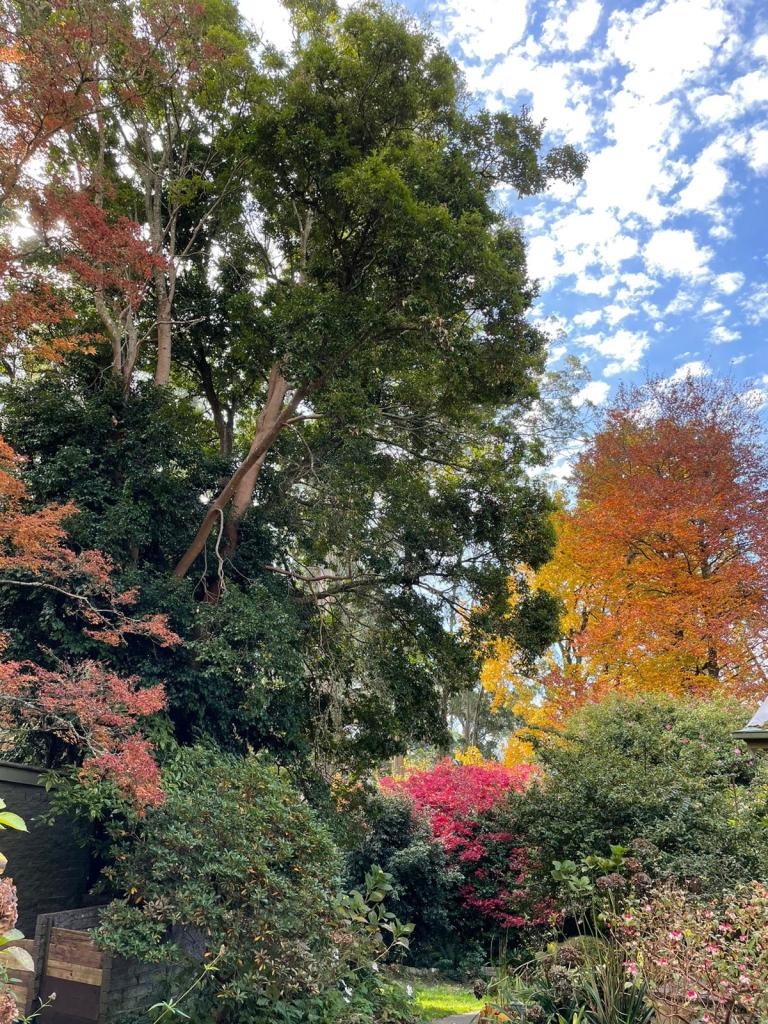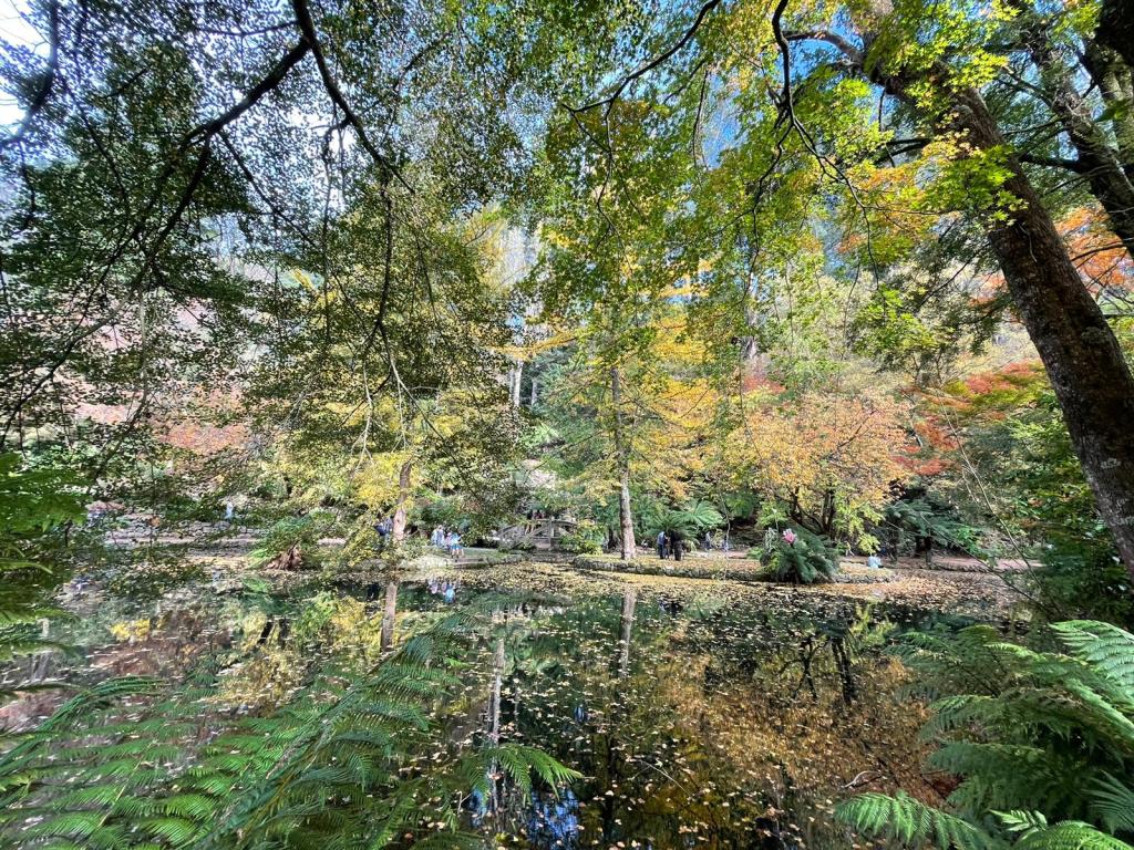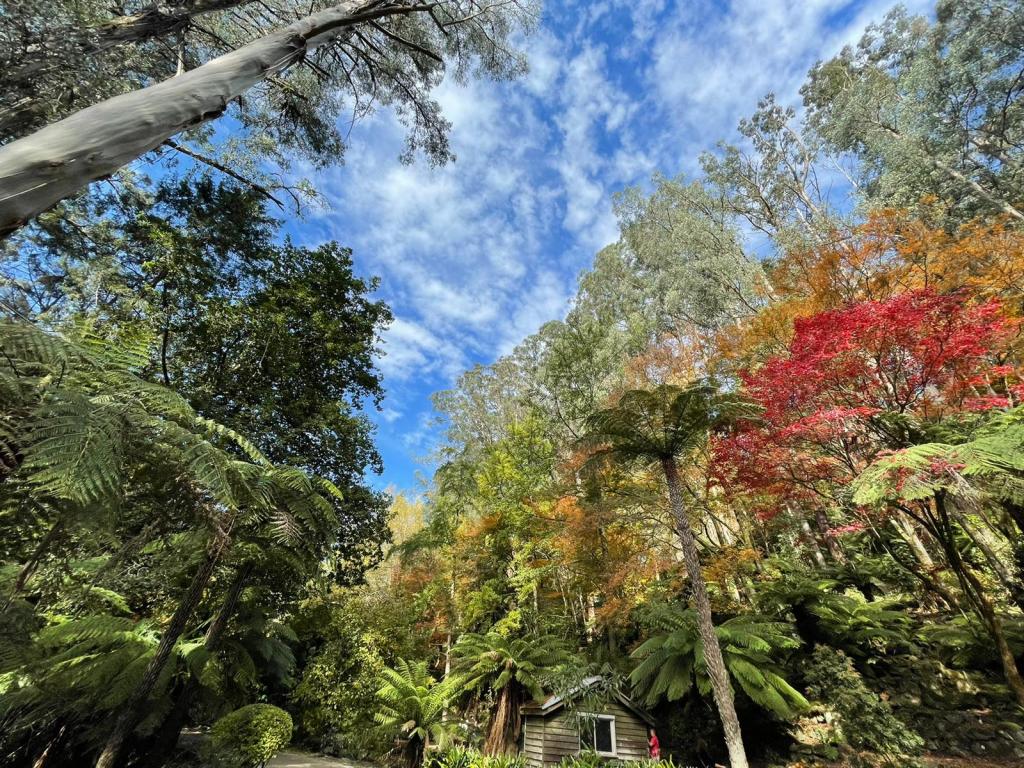 We expected the usual yellows and reds, but the shimmering gold set against an intense blue autumn sky caught us by surprise. I wondered if the Dandenongs would have been even more beautiful a week or a fortnight earlier because the ground was covered with fallen leaves. But would the gold have been as rich and vibrant? Does the colour deepen and brighten the longer an autumn leaf remains connected to its vein of nourishment? Like a dessert wine grape perhaps.