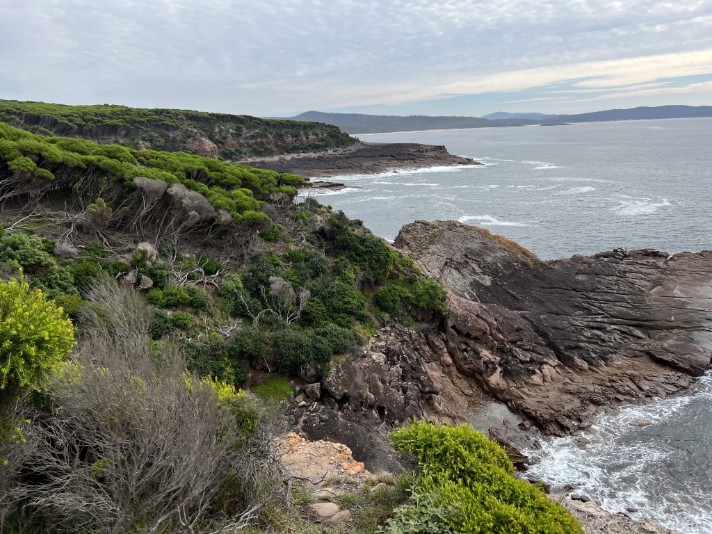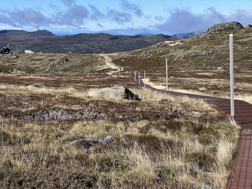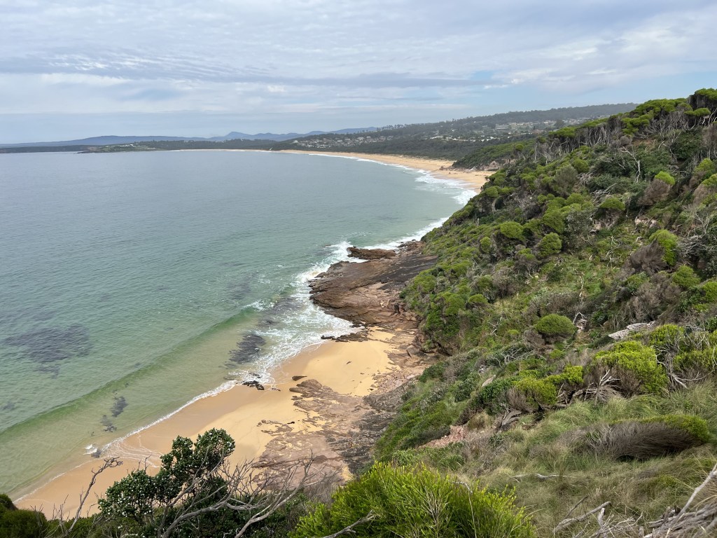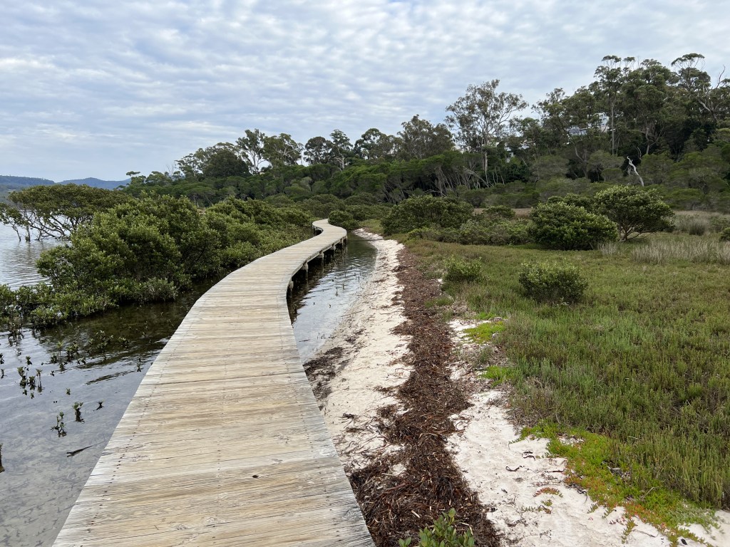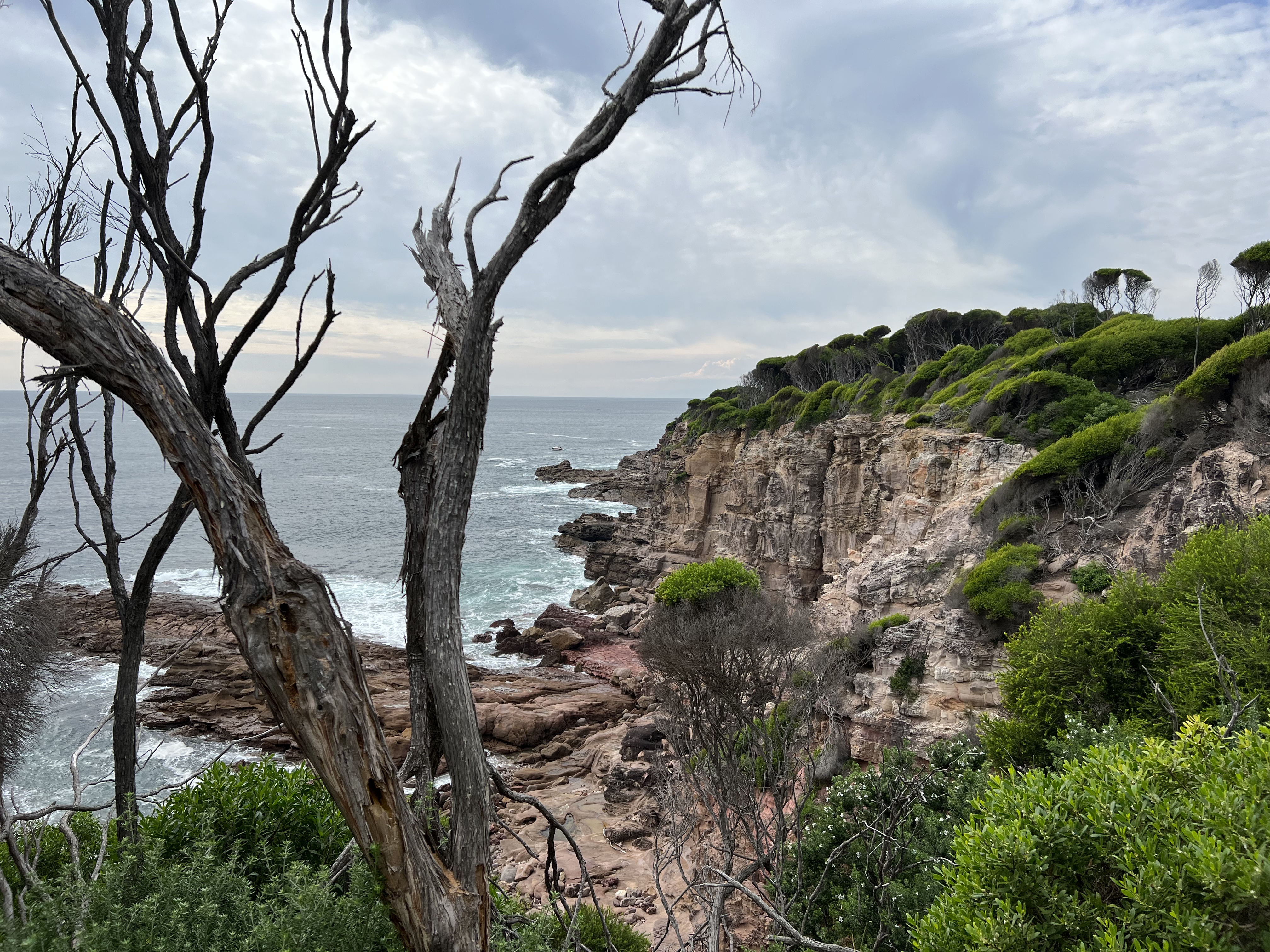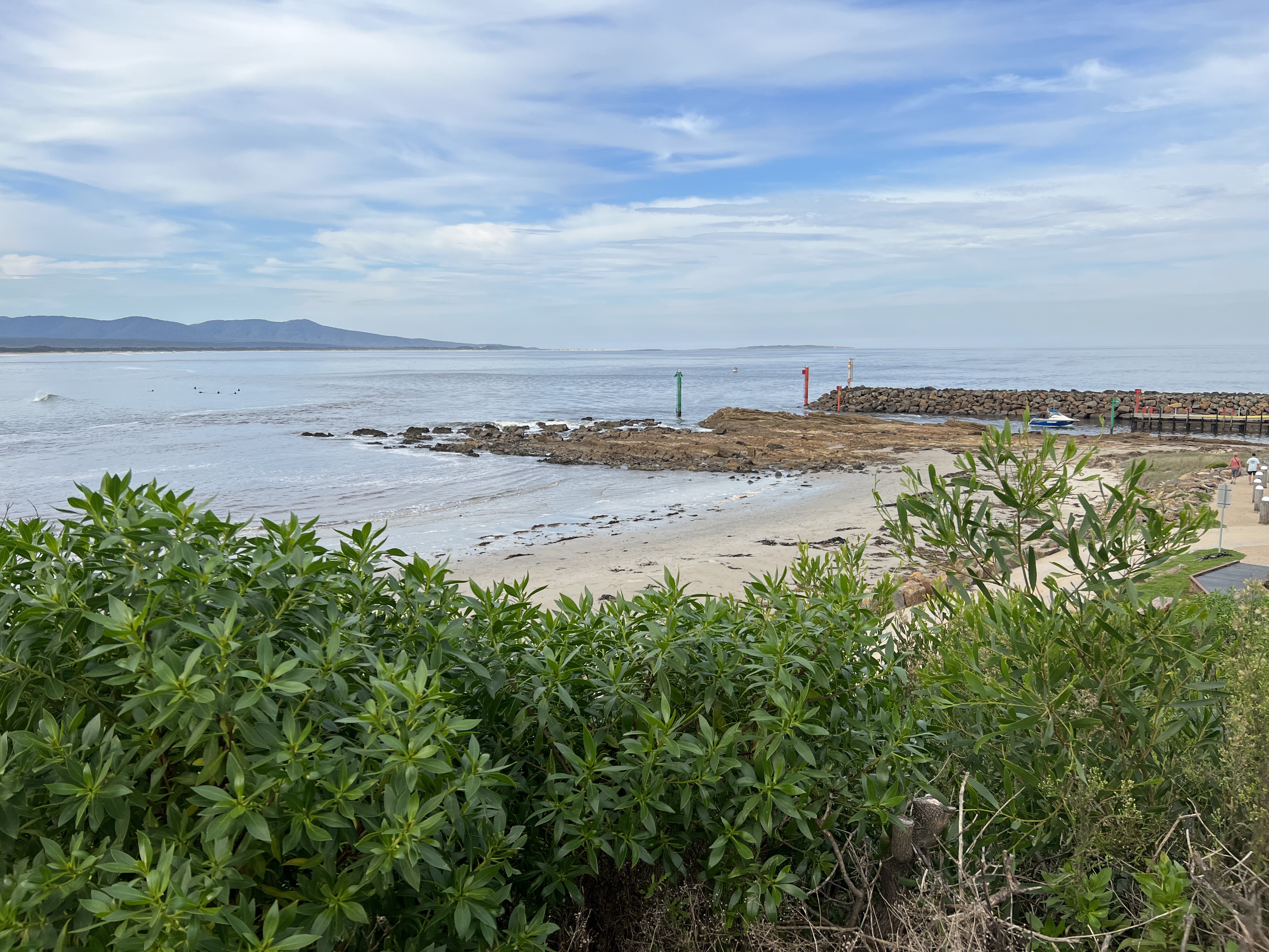 Mallacoota on a sleepy tranquil afternoonMallacoota shoreline. Hard to believe not a hundred metres inland is a brimming, noisy campsite.Mallacoota. Love the light hue.MallacootaMerimbula sunrise from our patioMerimbula boardwalkThe boardwalk disappearing into swampy bushland.Somewhere along the Sapphire CoastOn the walk to Tura HeadsNearing Tura HeadsOn Tura HeadsTura beachOyster farm at Pambula, near MerimbulaGoodenia rainforest, an oasis in a world of dry scrub.Goodenia rainforestGoodenia rainforestTractor seat plant in a Pambula nurseryHere’s the Nanny Goat at her very own lookout in CoomaJindabyne lake, our apartment hidden by trees at the far endKayaking anyone. On Lake Jindabyne. A bit choppyMr Strzelecki’s commanding presence in JindabyneNearing the Porcupine rocks up from Perisher ValleyAlmost invisible Porcupine rocksThe track to the roof of AustraliaKosciusko wildernessOn the roof of Australia, atop Mount KosciuskoA choice of trails. Next time, Charlotte Pass.Thredbo in the distanceLeaving the Snowies