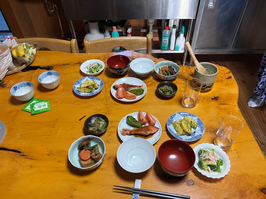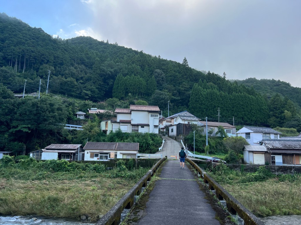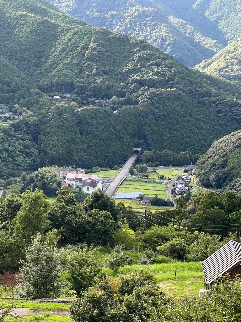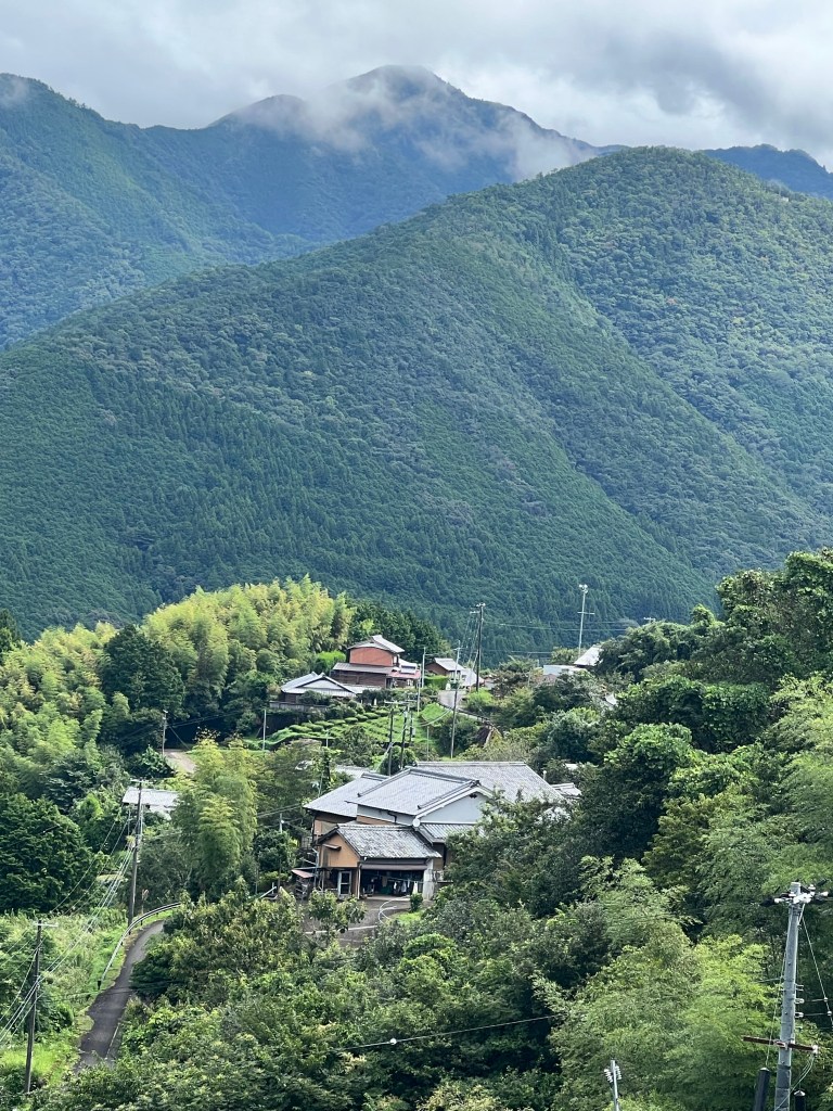 A 4 kilometre ascent to Takahara. Relentless steep sections assaulted my cardiovascular system. Takahara is a sleepy village nestled on a hillside with stunning vistas of the valley and hills beyond. It seems to be inhabited by mostly elderly folk. We stayed overnight in a private home Ryokan style.