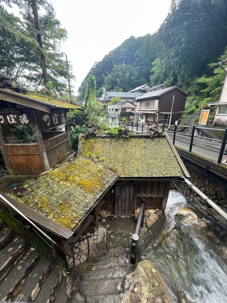 After passing under the largest Tori gate in Japan, we climbed most of the 2.5 kilometre forest track to Yunomine Onsen, where we spent the night, again Ryokan style.