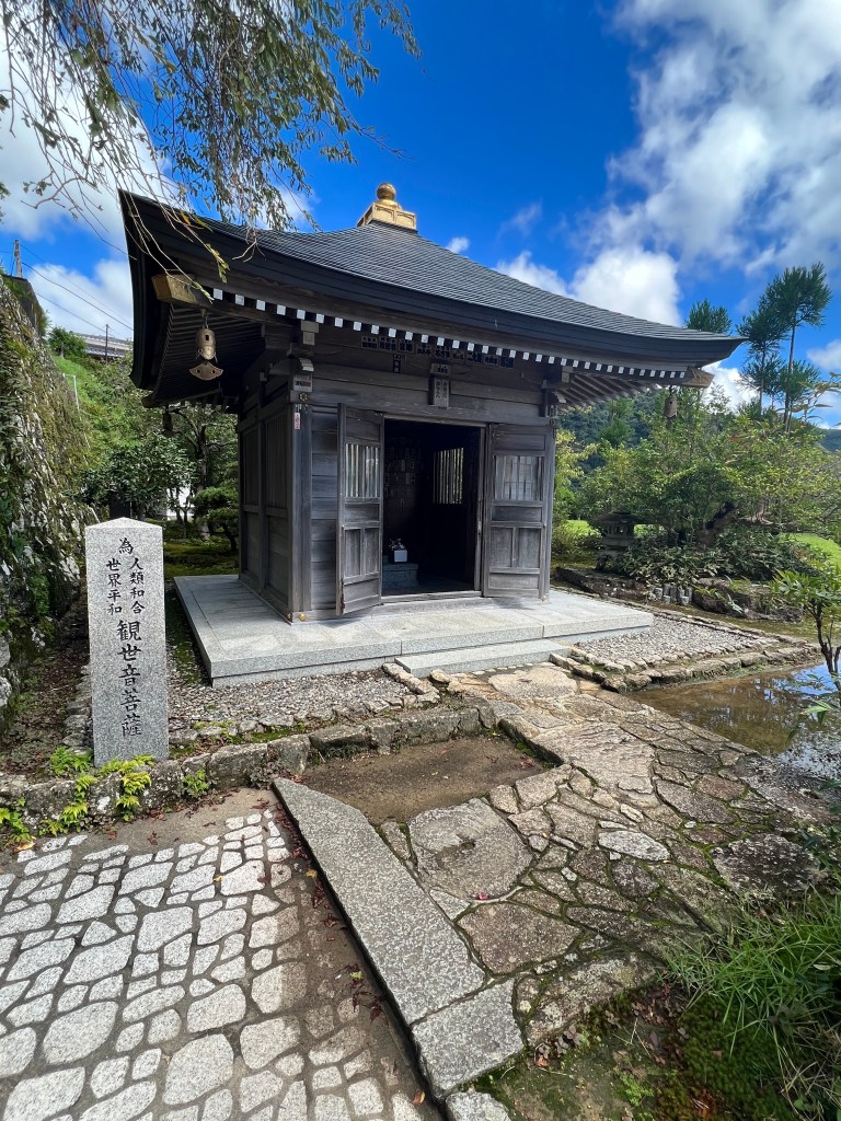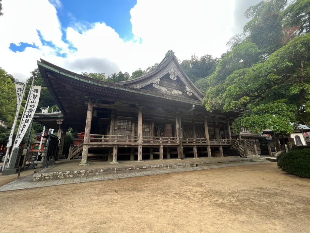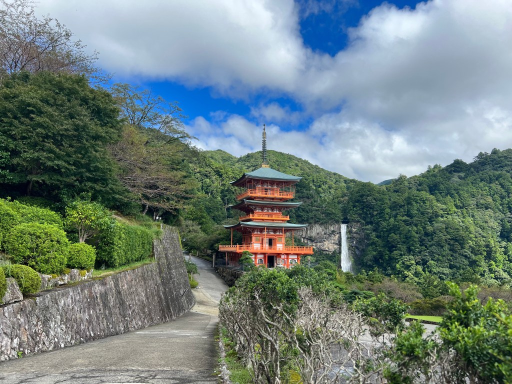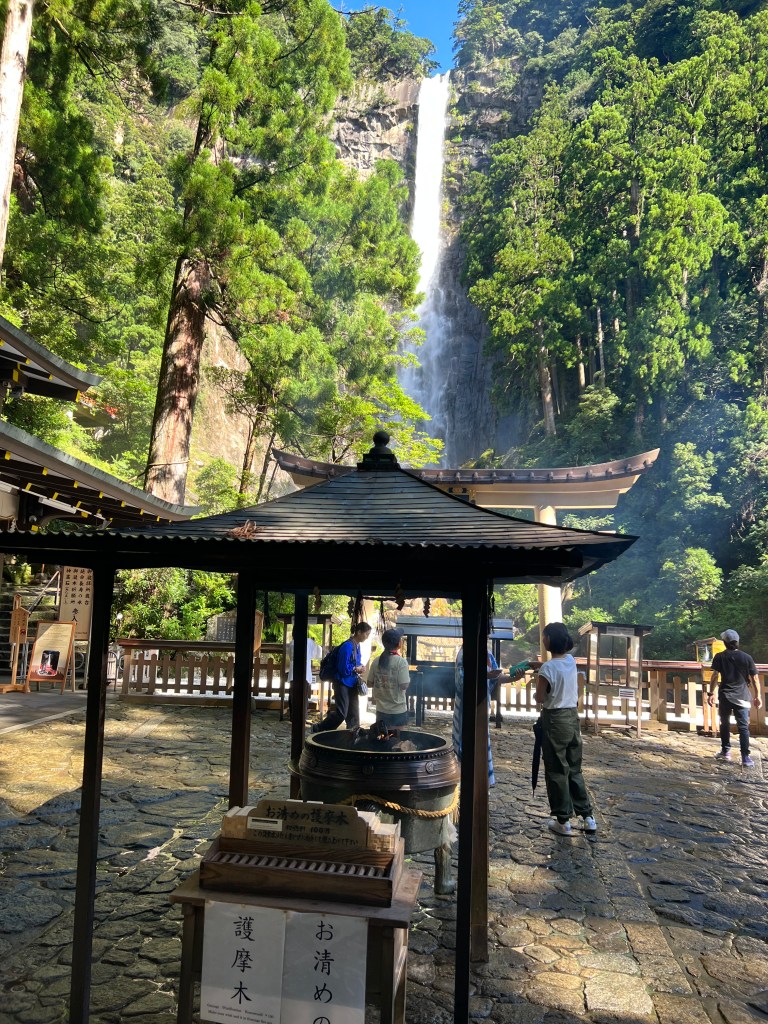 The longest and steepest walk: 16 kilometres with an 800-metre ascent in the first 3 or 4 kilometres. The descent to Nachi, our destination, was treacherous in places. All worth it. The Nachi shrine is a complex of temples. At one end is Nachi Falls, Japan’s highest waterfall, also a shrine.