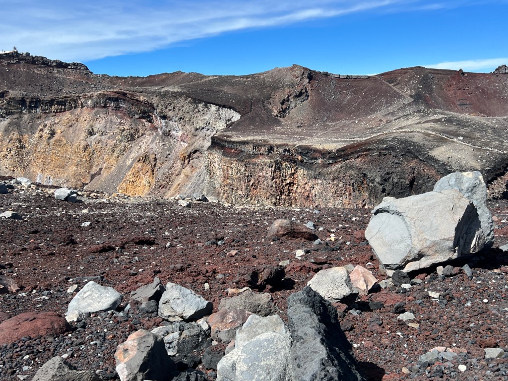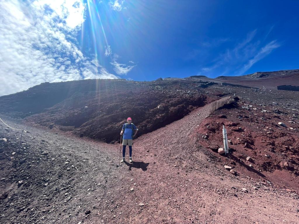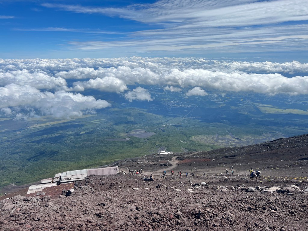 The descent is why I probably would not climb Mount Fuji again. it took us along a different route, a steep, zigzagging, soft gravel, slippery path, to which my timid disposition was most unsuited. In my mind, I risked life and limb with every step. Others, of obviously different dispositions, flew past me. I don’t want to do that again.