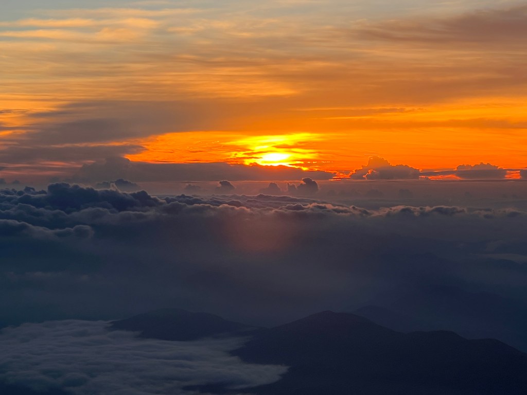 The ascent to the sixth station was easy. It got a bit steeper from there. At the lower reaches of the seventh station we paused to take in the sunrise.