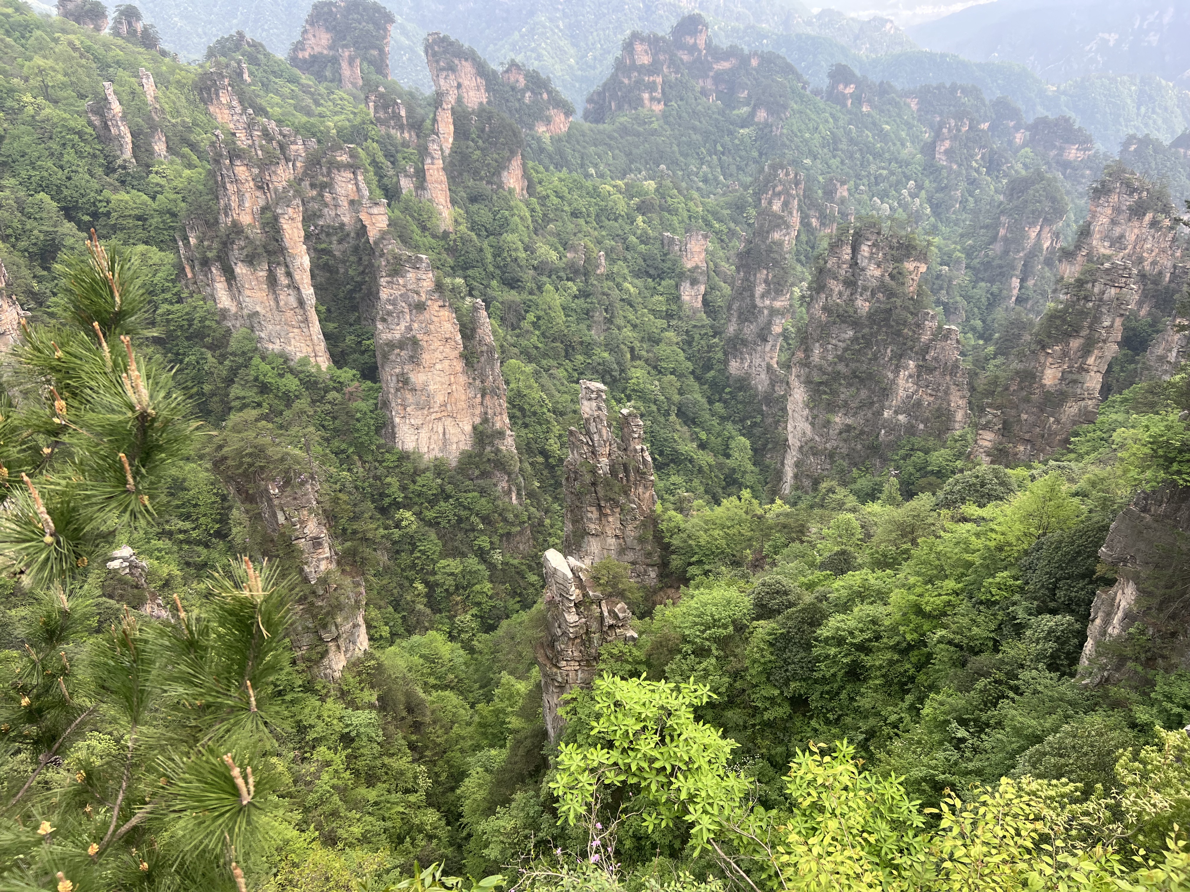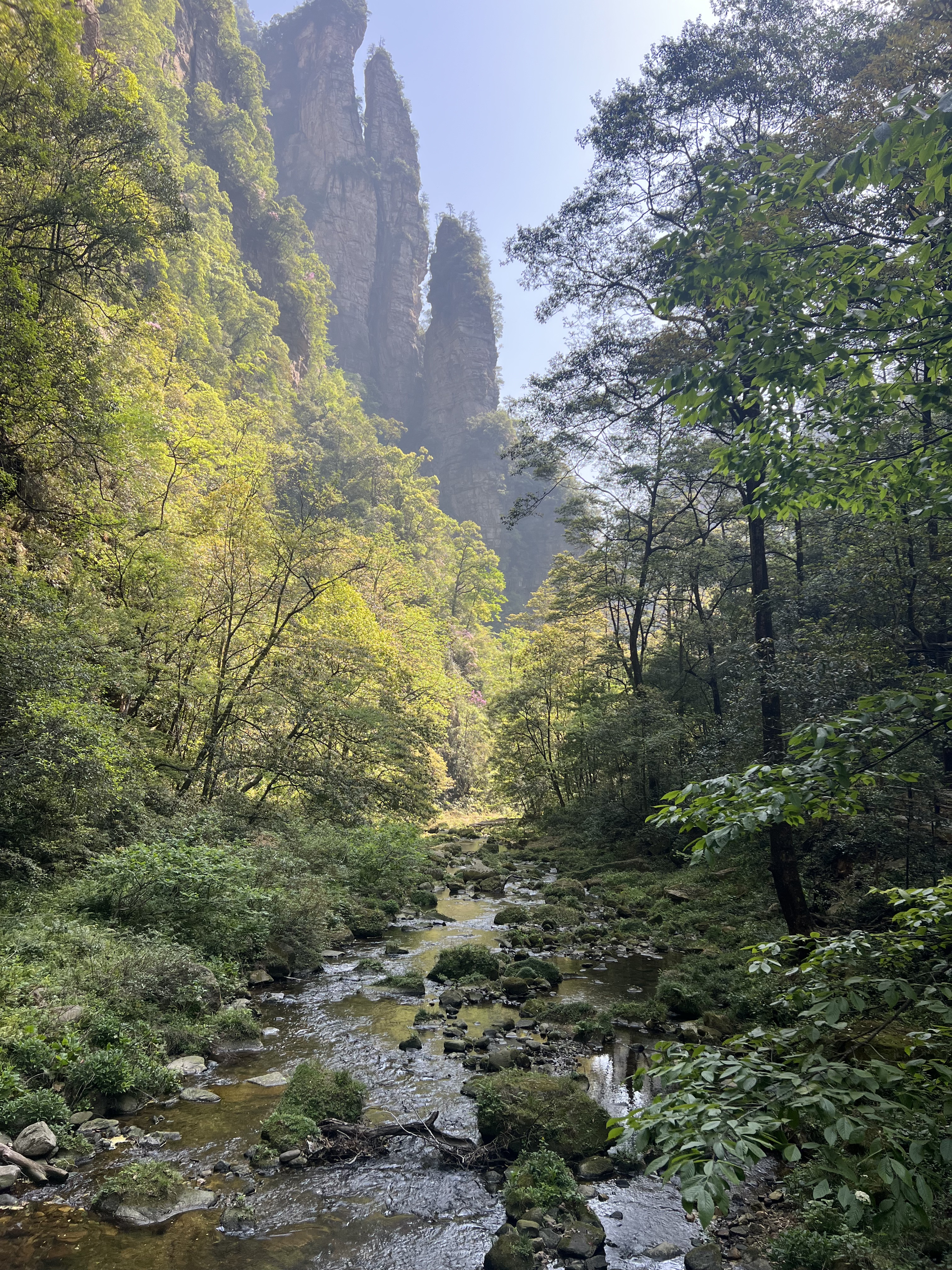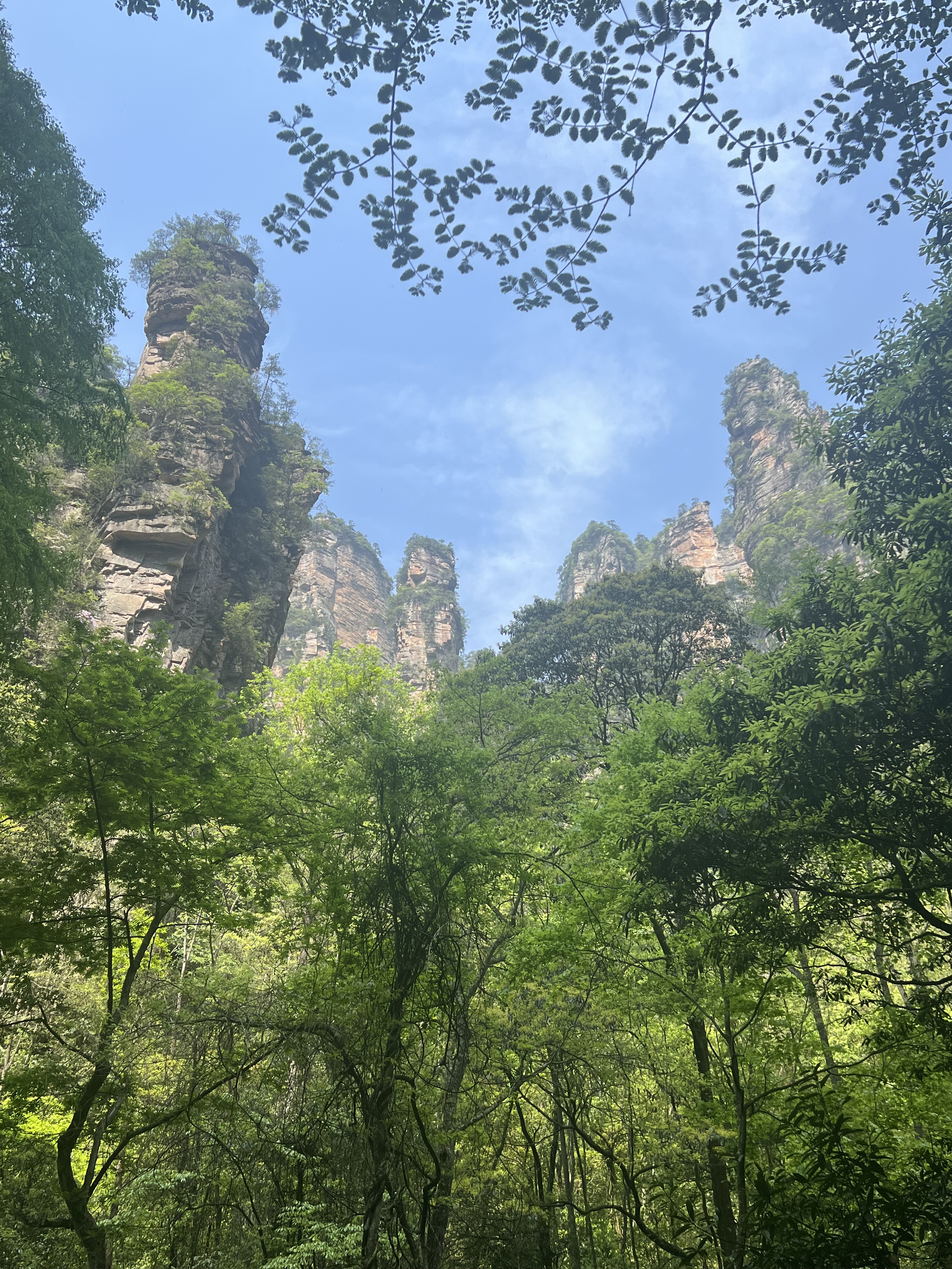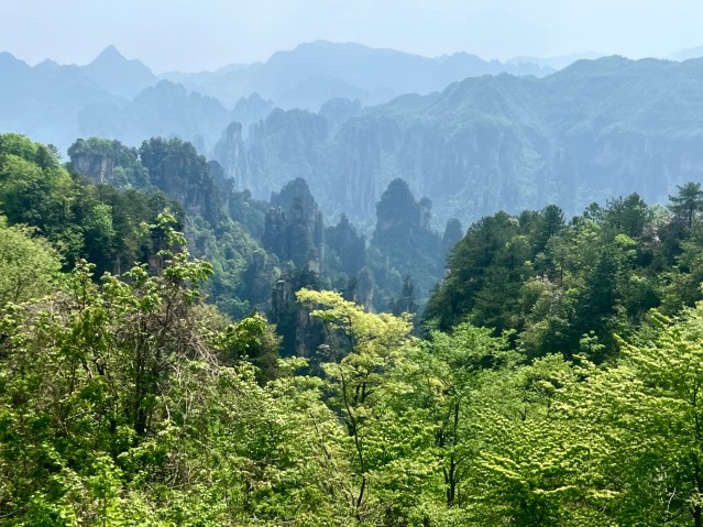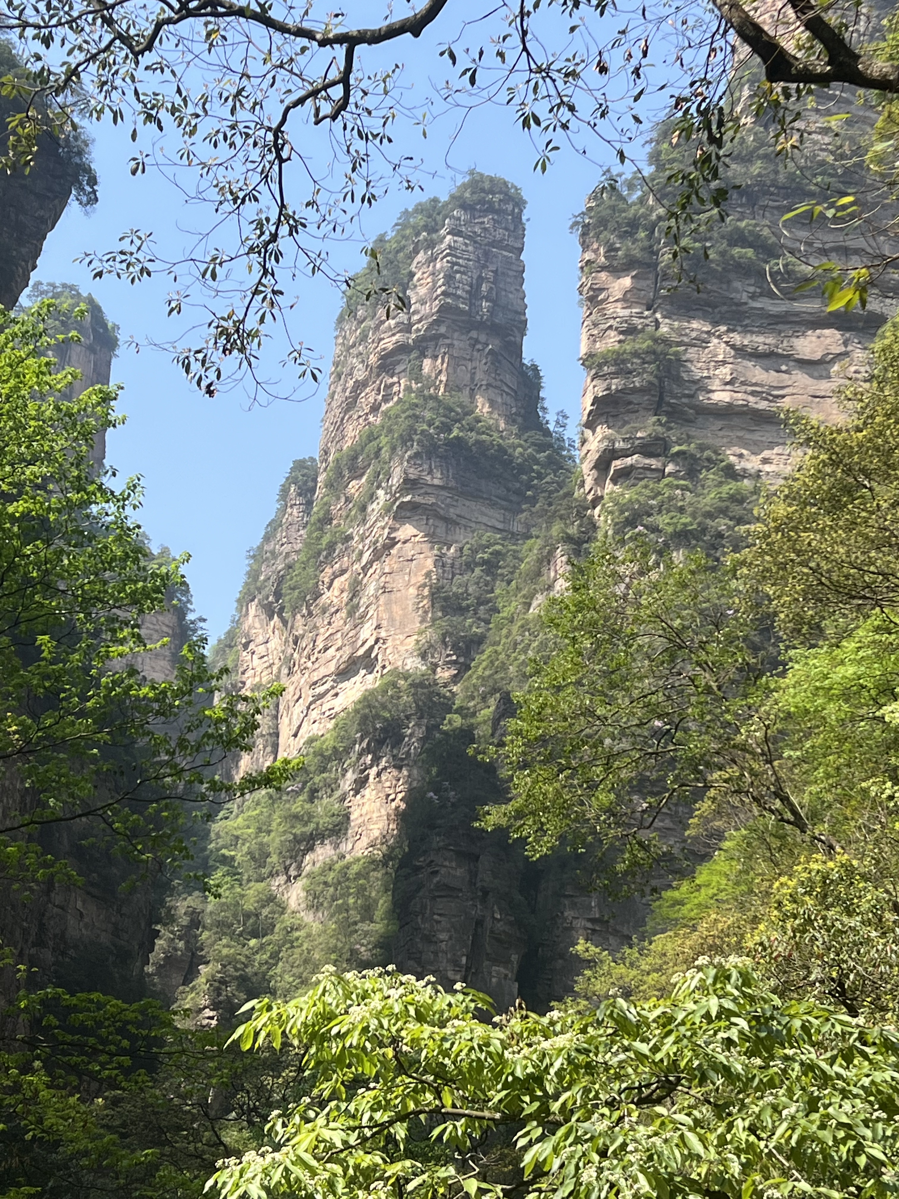 As we progress, the crowd thins, until we go past the half-way mark when we encounter walkers from the other end. Most of the people I’ve seen so far are members of local tour groups, many of them old, probably retired. It appears the park caters for old people, equipped as it is with cableways, an outdoor elevator and free buses transporting people to popular sites like the Avatar mountains that everyone wants to see. After an almost seven-kilometre amble, we reach the end of the golden whip stream walk, the first activity to mark off our list.