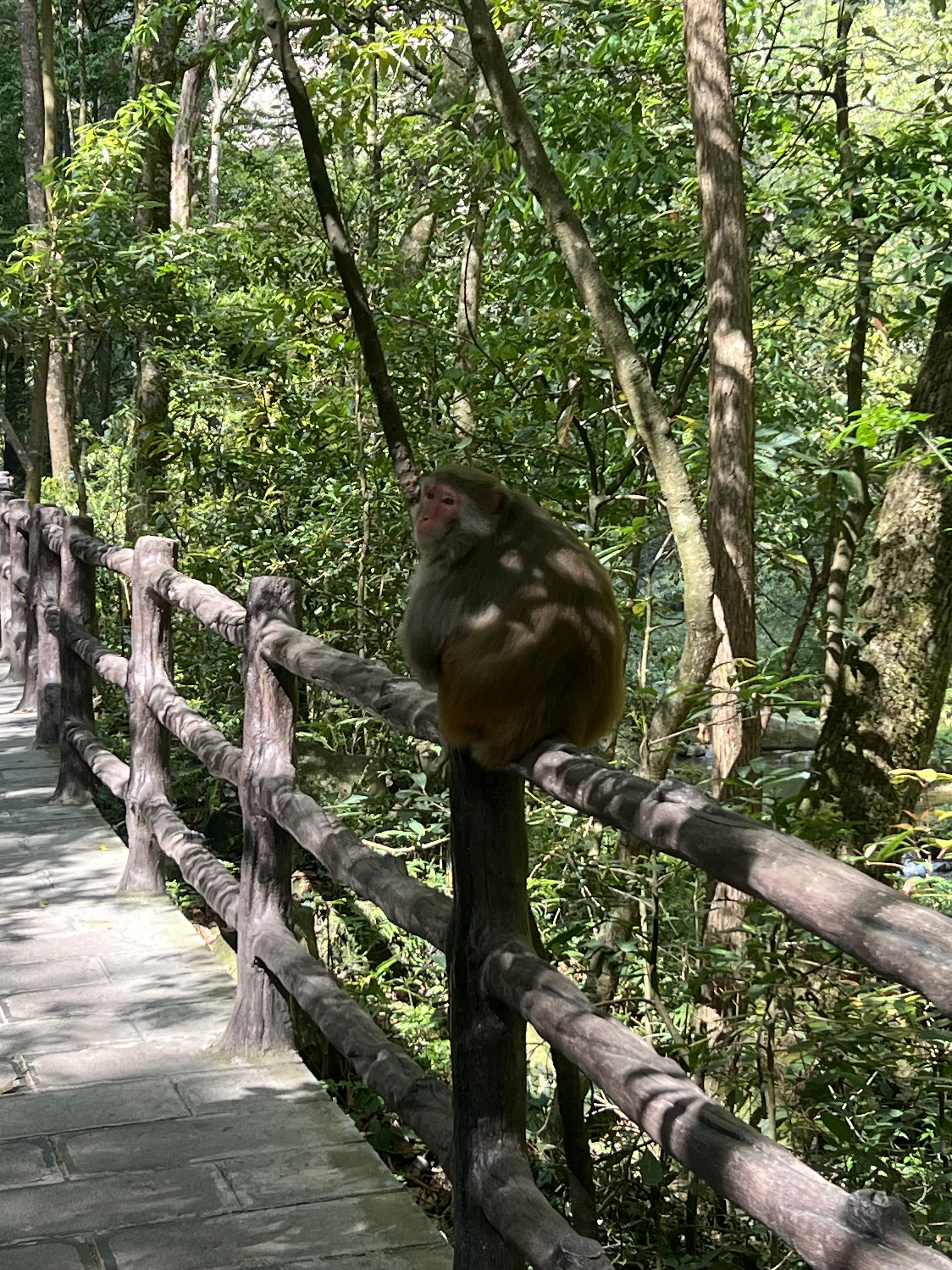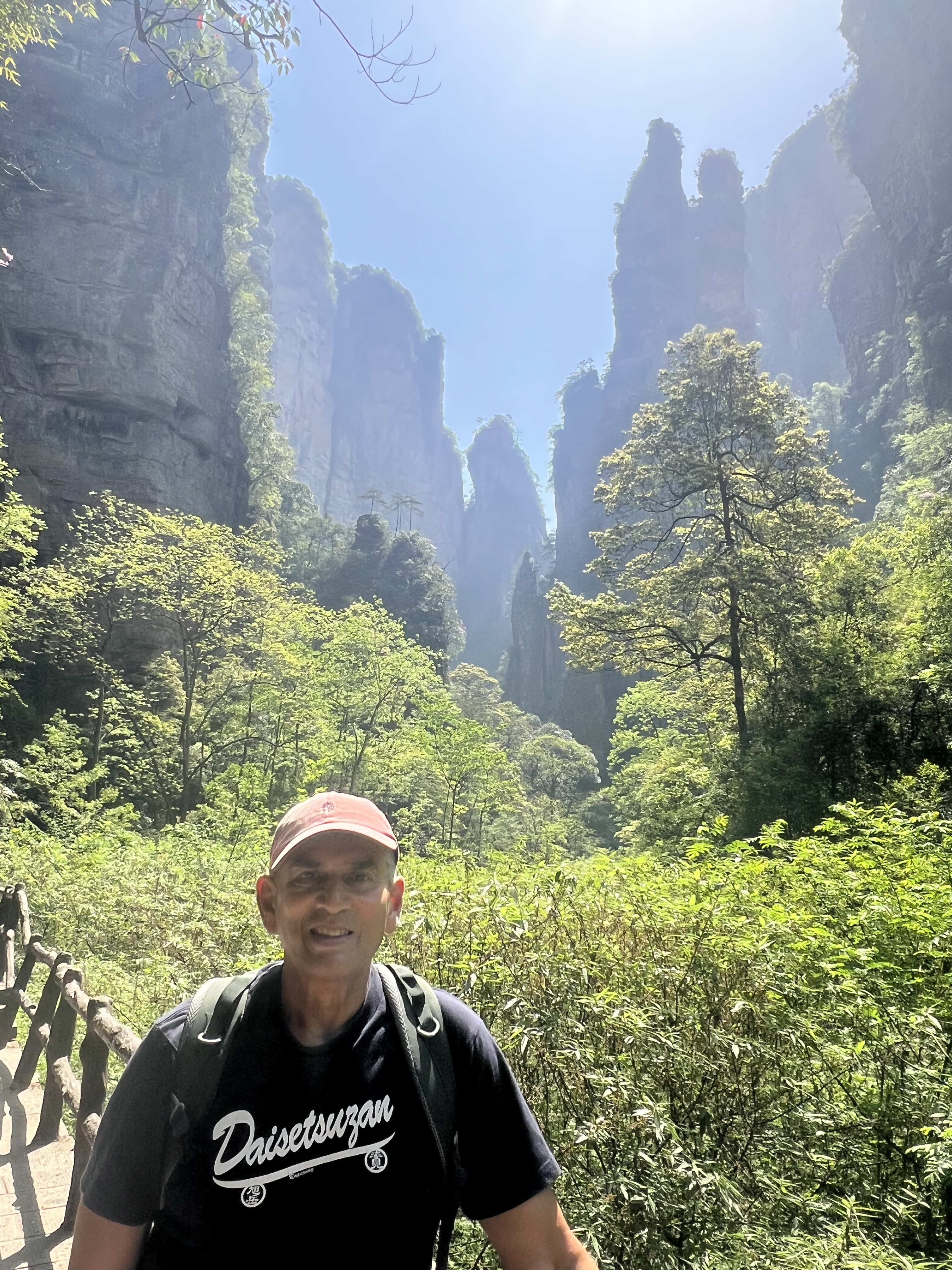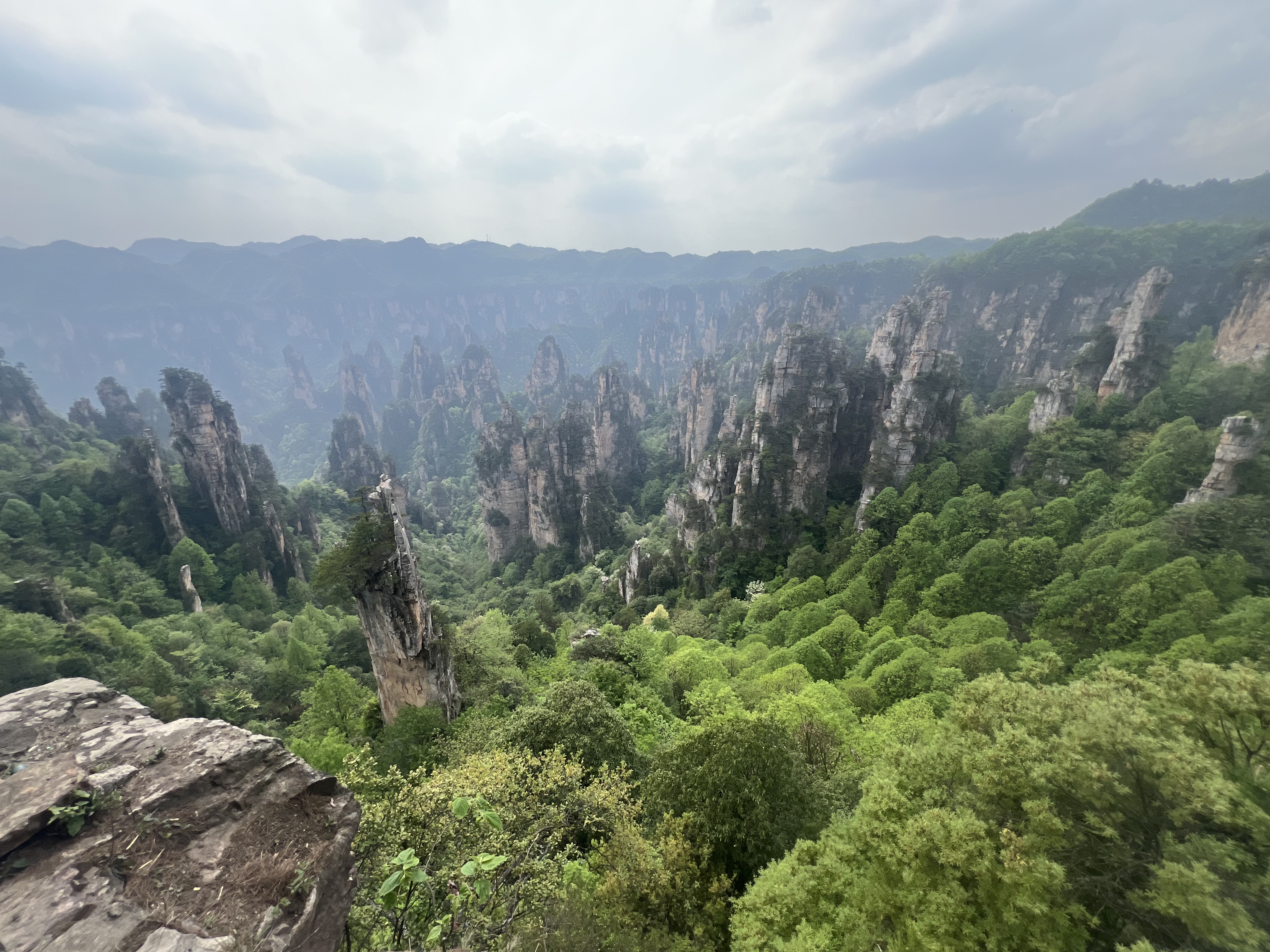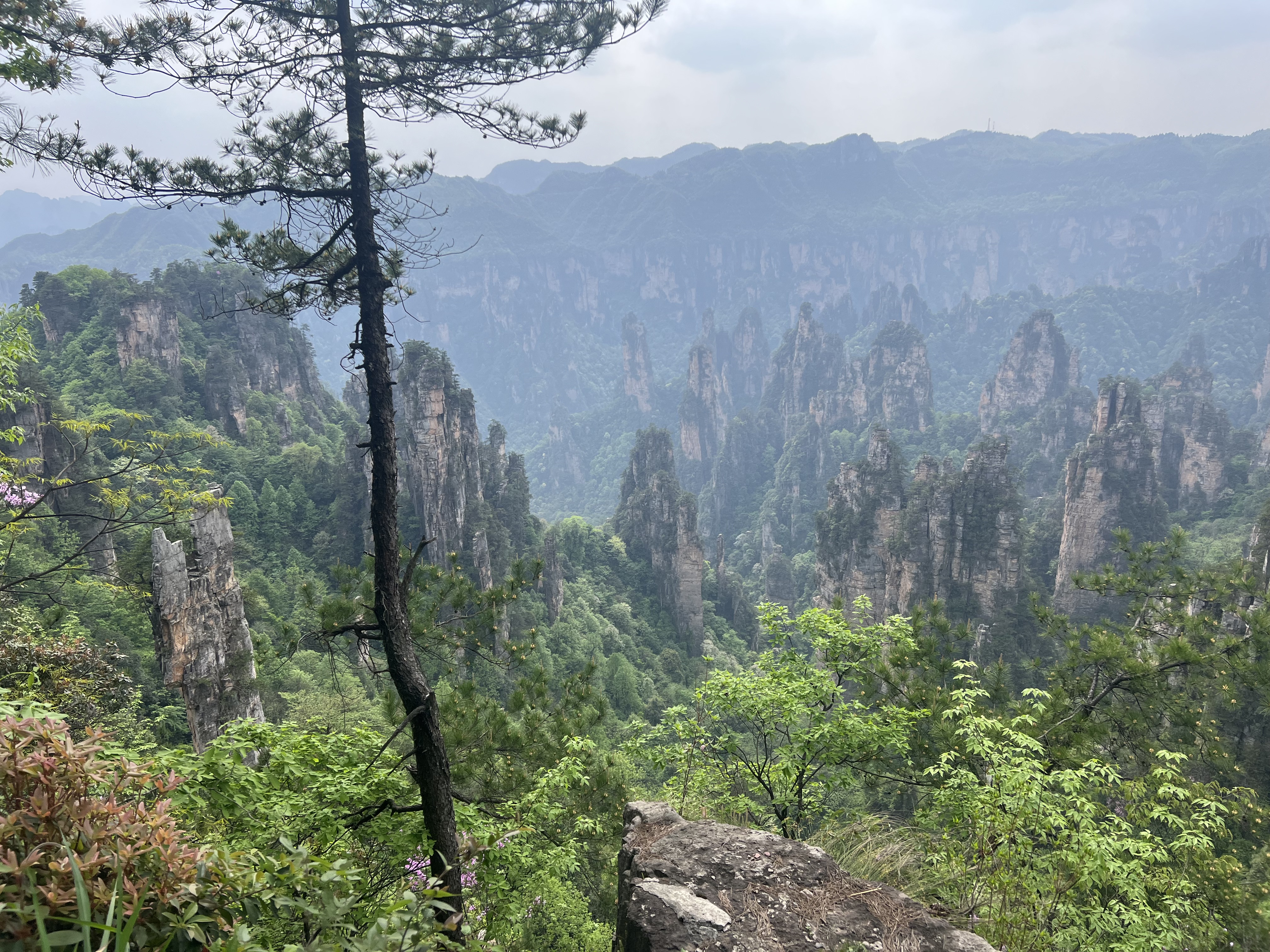 As we progress, the crowd thins, until we go past the half-way mark when we encounter walkers from the other end. Most of the people I’ve seen so far are members of local tour groups, many of them old, probably retired. It appears the park caters for old people, equipped as it is with cableways, an outdoor elevator and free buses transporting people to popular sites like the Avatar mountains that everyone wants to see. After an almost seven-kilometre amble, we reach the end of the golden whip stream walk, the first activity to mark off our list.