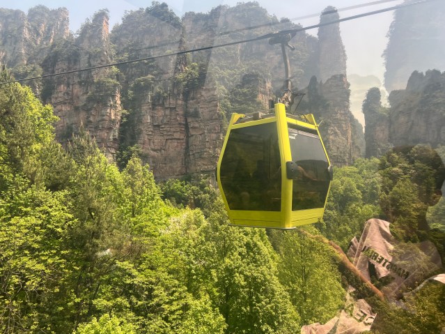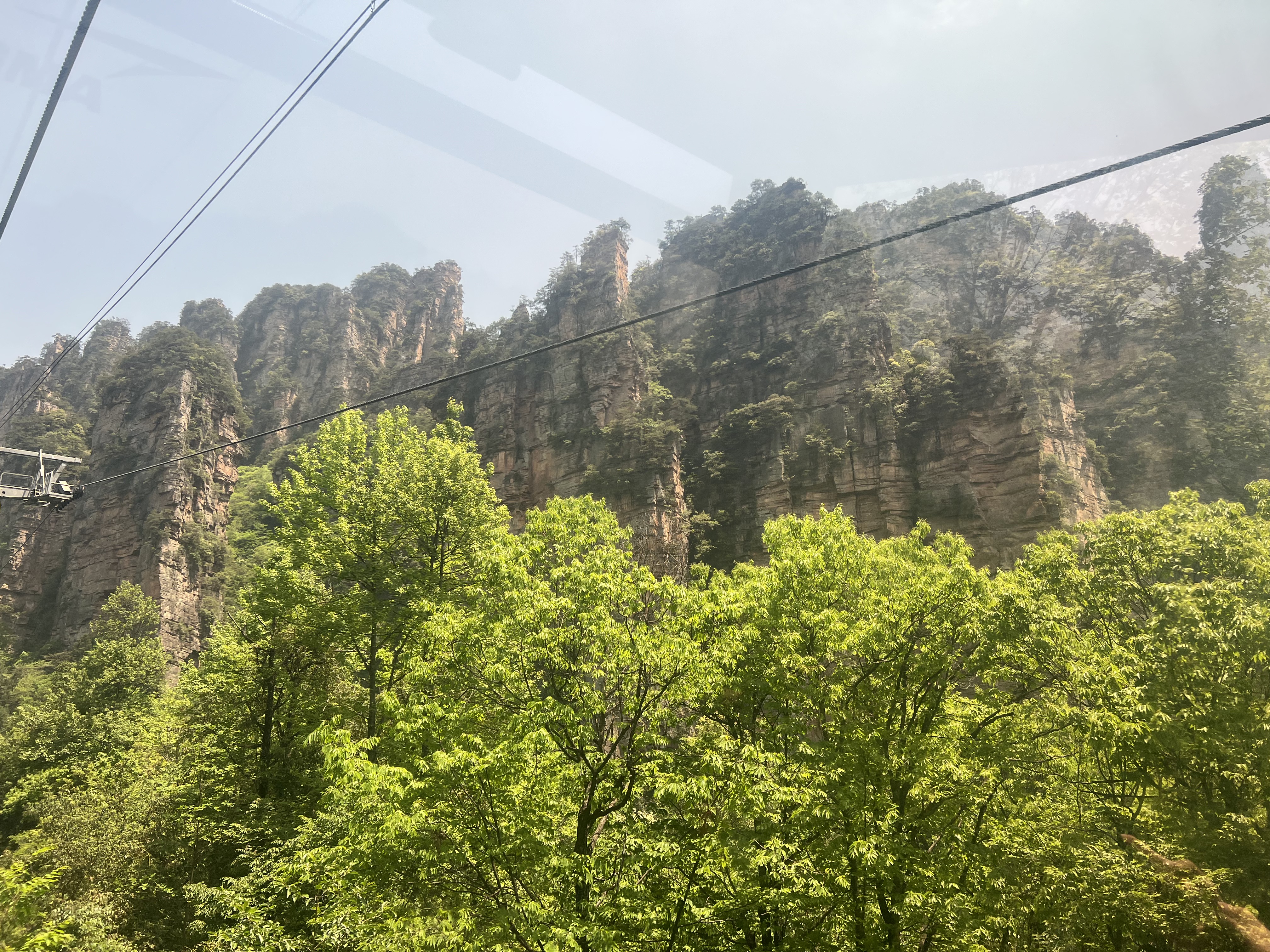 The cable car ride brings us close enough to appreciate the magnitude and splendour of the sandstone monoliths that dominate the landscape. We discover something else about this amazing national park. The cable car is soaring up a steep mountain, the summit a speck in the sky. It means that the Zhangjiajie national park is part high country. We learn later that the high country comprises Yangjiajie where we are now headed, Yuanjiajie where the Avatar mountains are located, Huangshi village and Tianzi mountain. The golden whip stream, ten-mile gallery, the bottom of the Bailong elevator and the bottom of the Tianzi mountain cableway are in the low-lying parts.