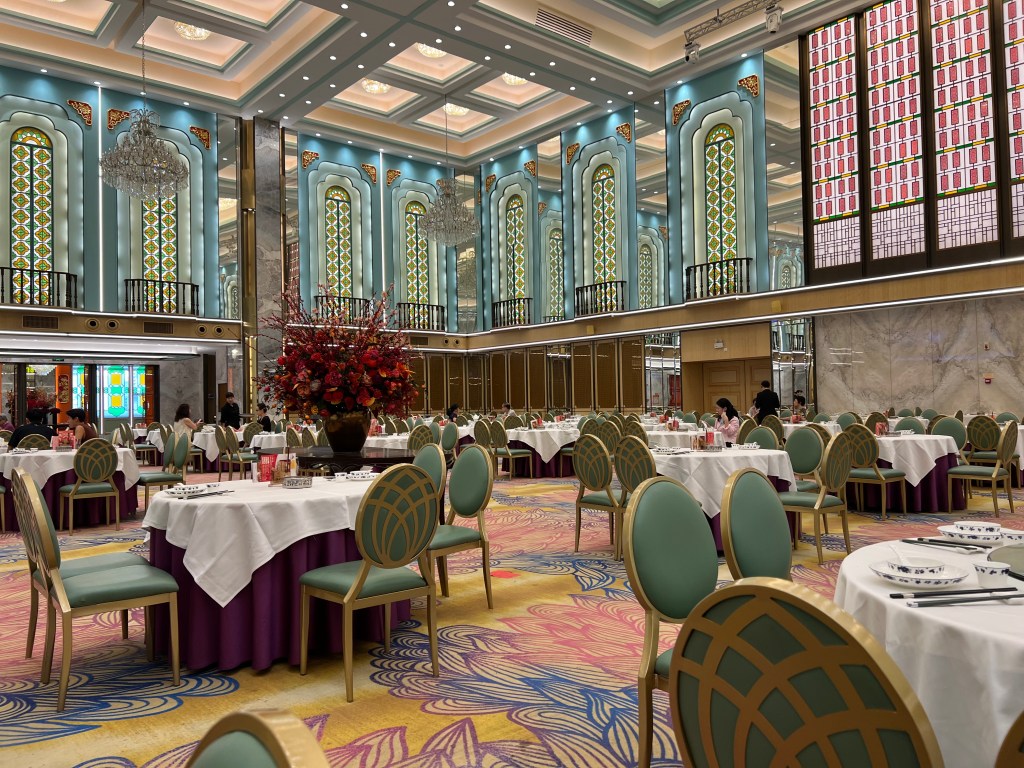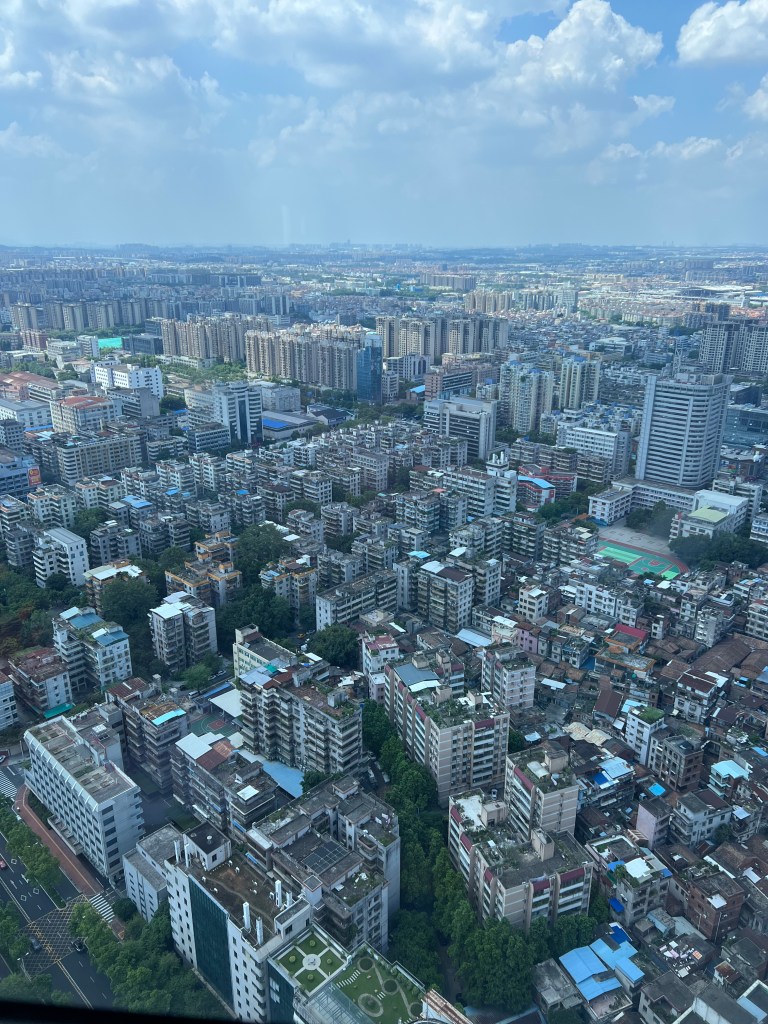 Foshan’s Swissotel is a bump-up from last night. They upgrade us to a room on the 46th floor. Maybe they’ve been upgrading everyone. The hotel doesn’t feel crowded. Lifts take little time to arrive and they are almost always empty.