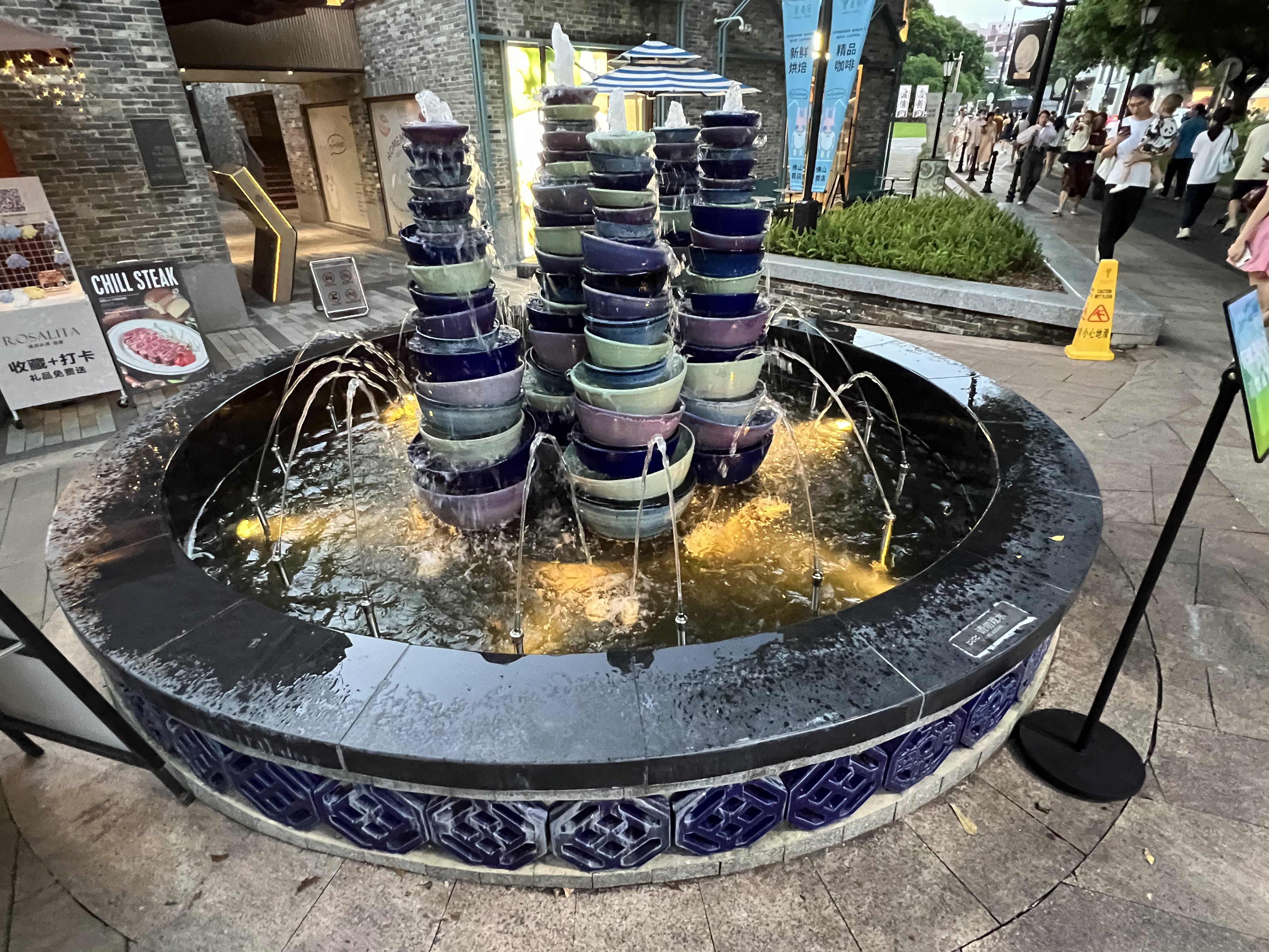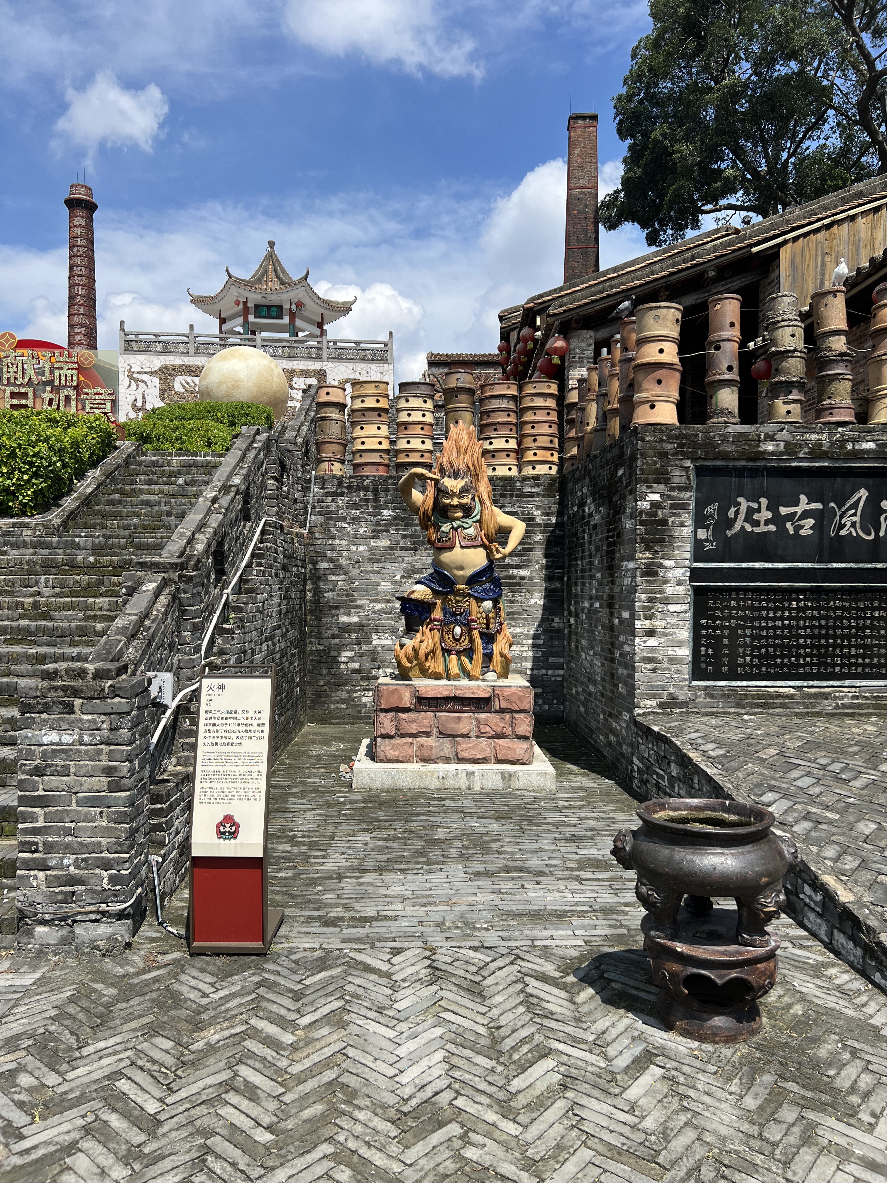 The Nanfeng kiln is still in use, fired up every two months to produce a variety of ceramics sold in shops situated within the kiln precinct. The kiln these days is a complex of alleys, shops, cafes, plazas and a theatre. Plus the kiln itself. The shops sell mostly tourist kitsch. Some of the ceramics are nice, especially the more rugged ones fired in the kiln. They cost significantly more than those produced in modern facilities.
