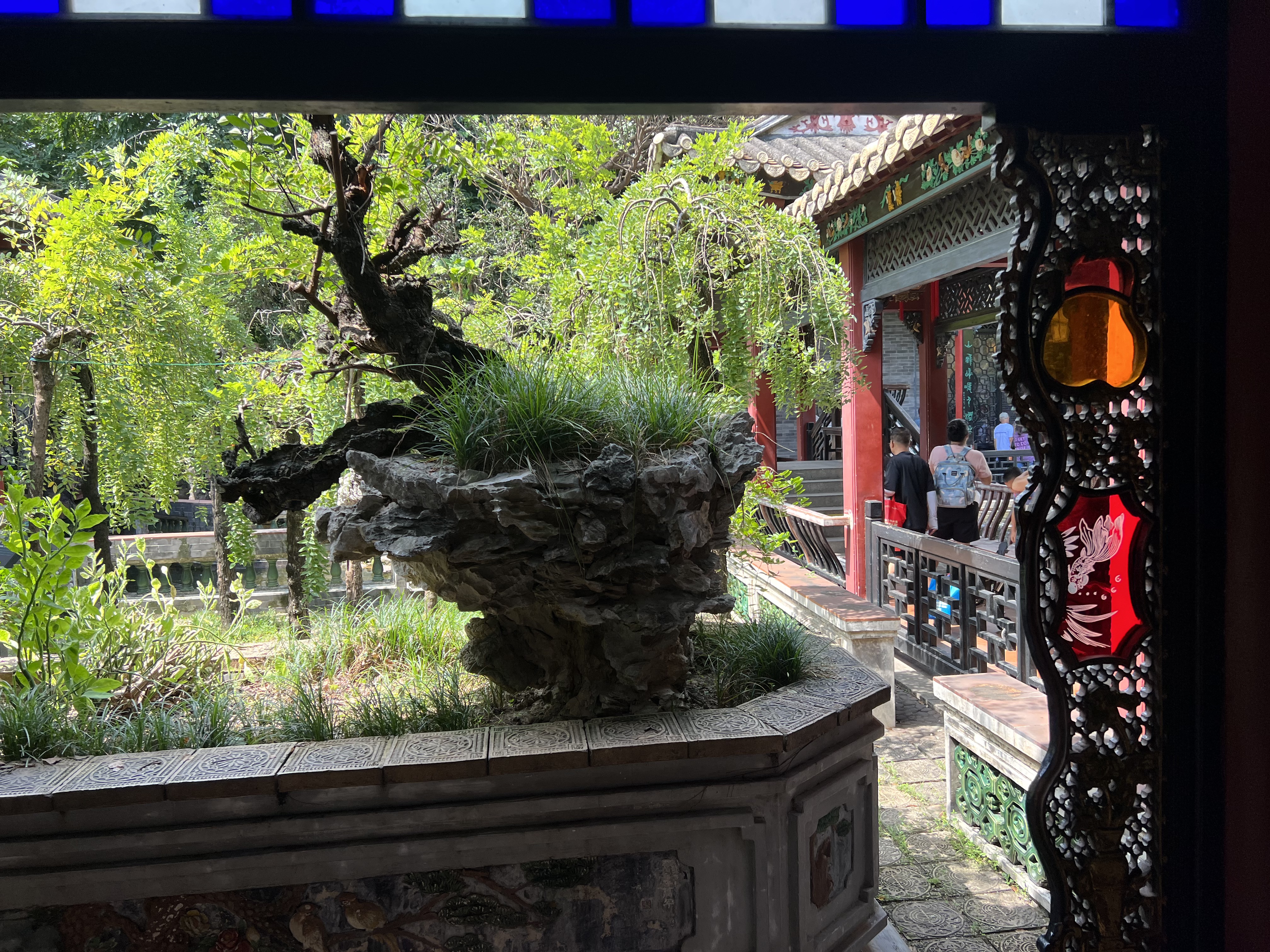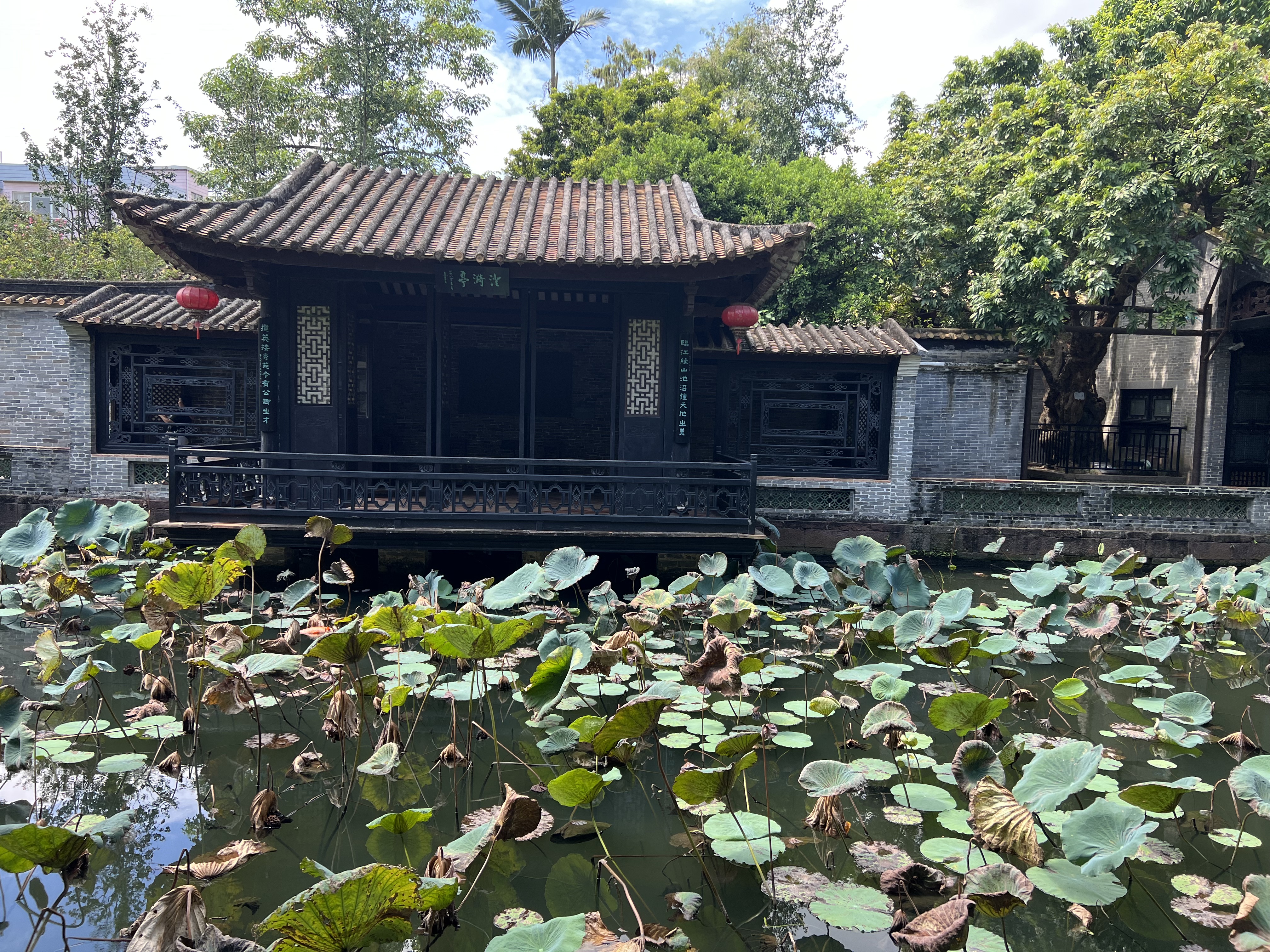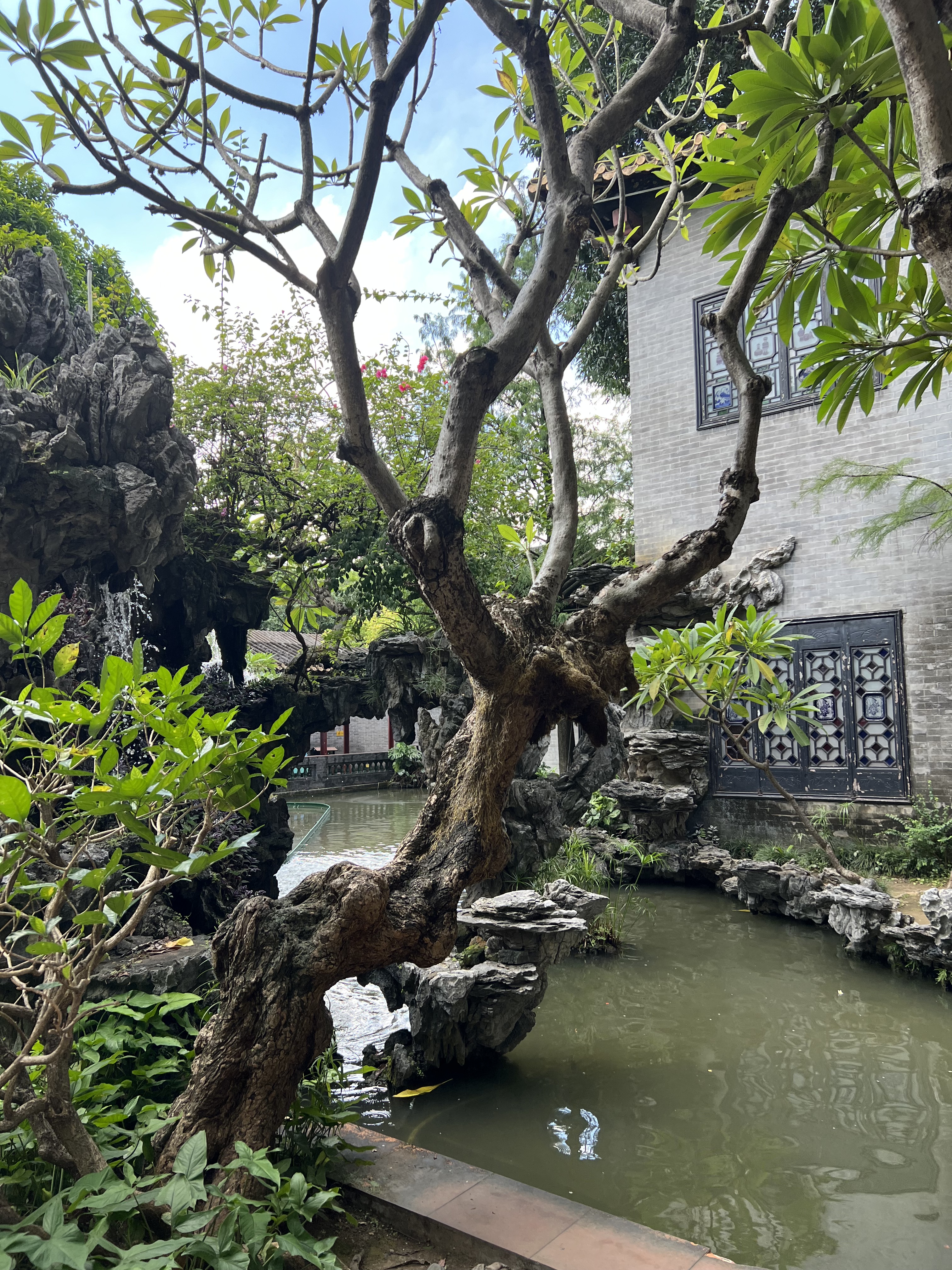 Shunde is a district so big it is not possible to tell where it begins and ends. I see signs on shops saying we are in Shunde barely minutes into our journey, but it takes us another half-hour to get to our first destination. Before sampling Shunde’s culinary delights we are visiting Qinghui Park. Oh, a park, I think, immediately summoning a vision of lawns, manicured garden beds, exotic trees, lakes, fountains, and most of all a network of paths for a substantial morning walk. Qinghui park, also called Qinghui Garden, has all those things crammed into a small enclosure that does not facilitate walking as an exercise, unless you do many circuits of the paths, not really possible because there are many visitors about. No matter, there is a lot to see. The garden has many cottages and pavilions, all connected by paths that take you along waterways and lakes, swollen with fish and in one of them, a congestion of waterlilies. We stop at many fruit trees, some hundreds of years old. The complex began as the home of a Ming Dynasty scholar. Later, a Qing Dynasty scholar bought it. The park has elements of both dynasties.