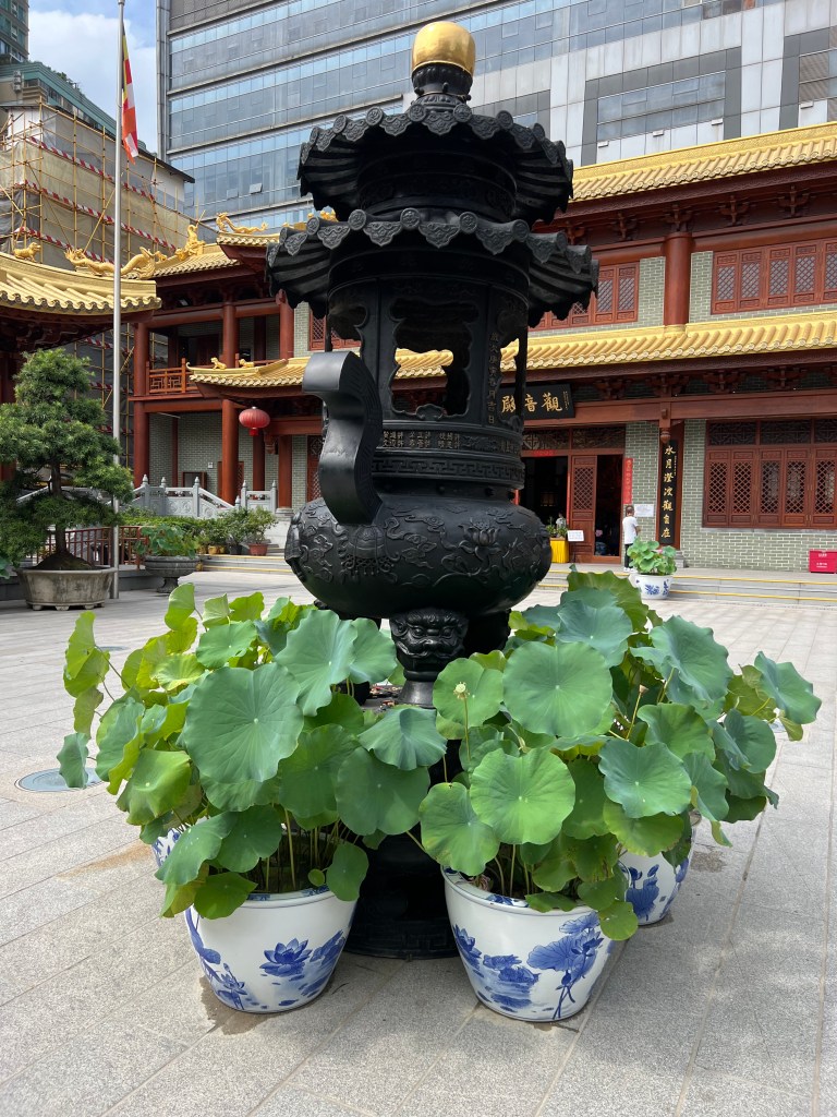 A sore throat niggles all day, not making me ill, but not going away either. My periodic tiredness in the energy sapping heat isn’t worse than normal. A temple, bang in the middle of the Beijing Street precinct, is large and imposing and ornate. A chanting litany is in progress. Stark and mystical, it harks back to ancient times, sounding like Gregorian chant. The litany with responses by kneeling worshippers is reminiscent of church services, masses in particular.