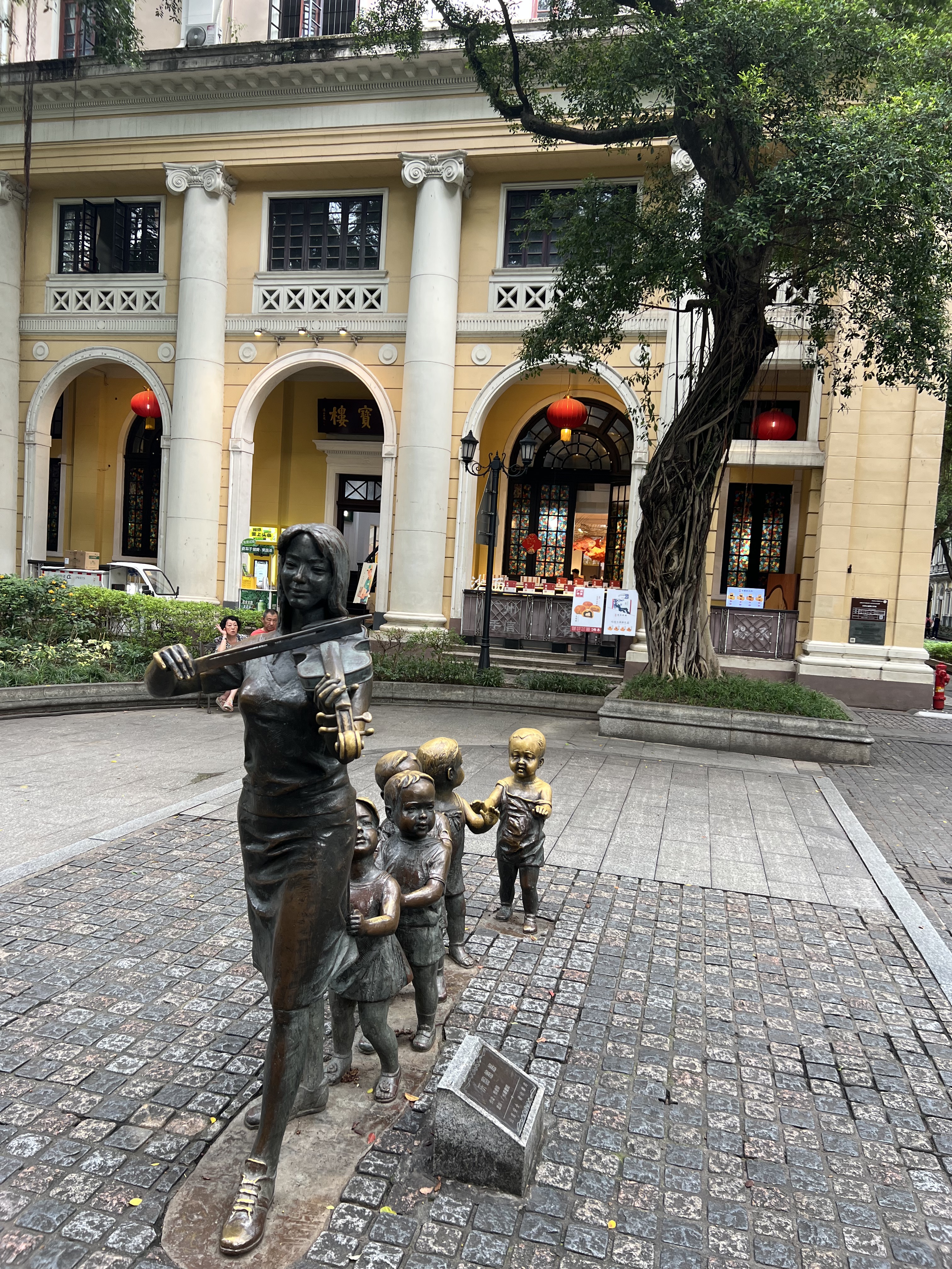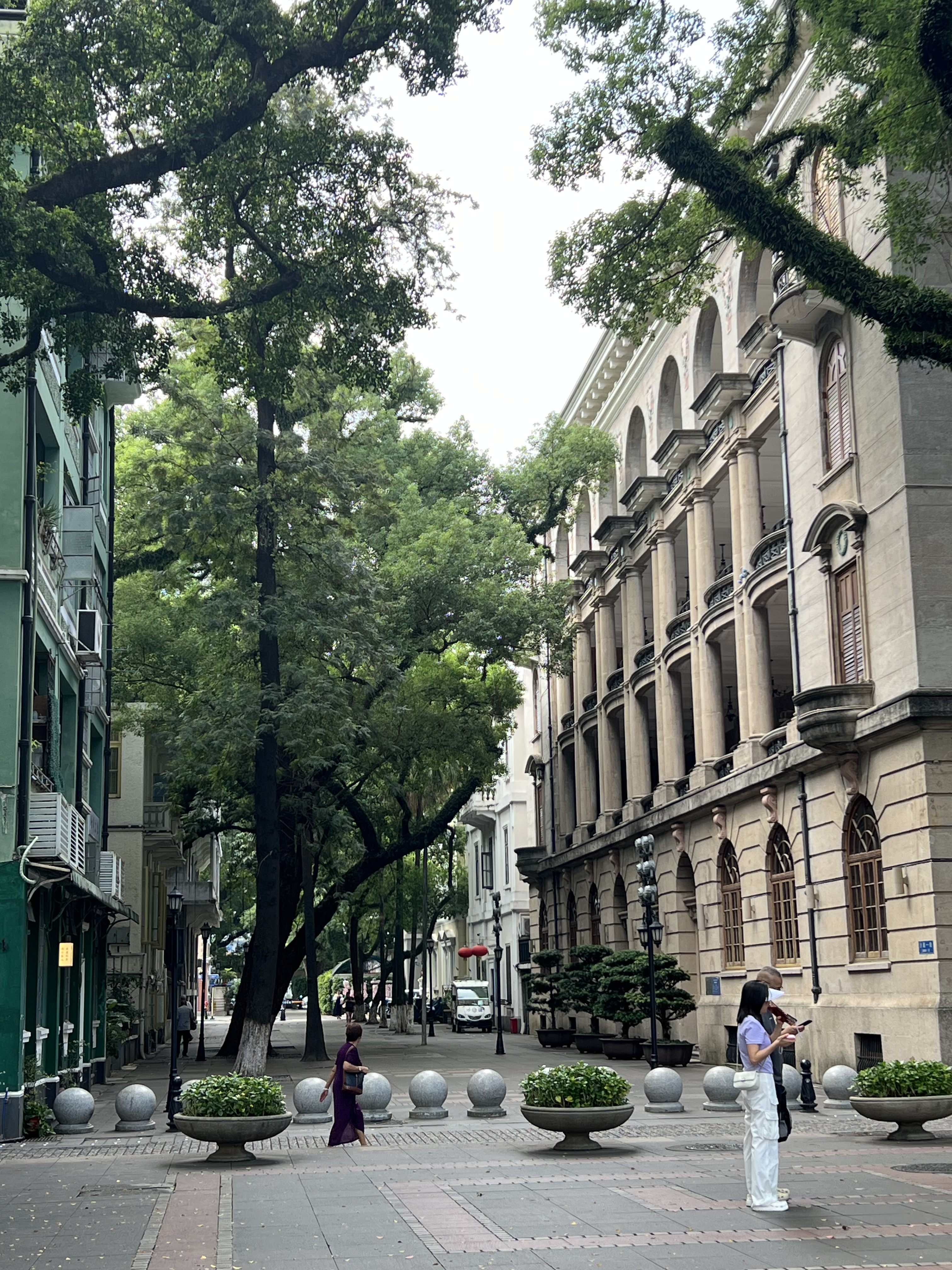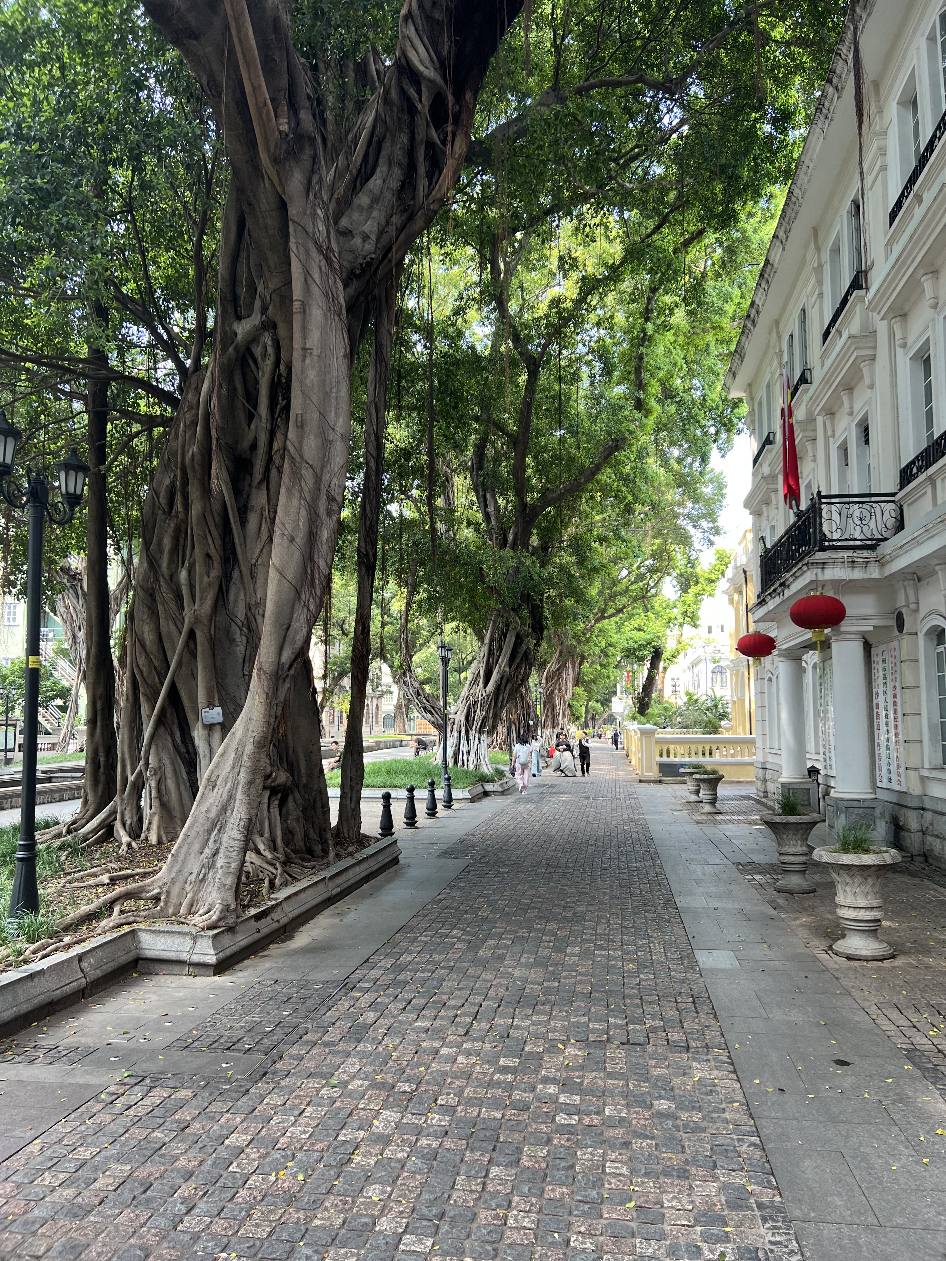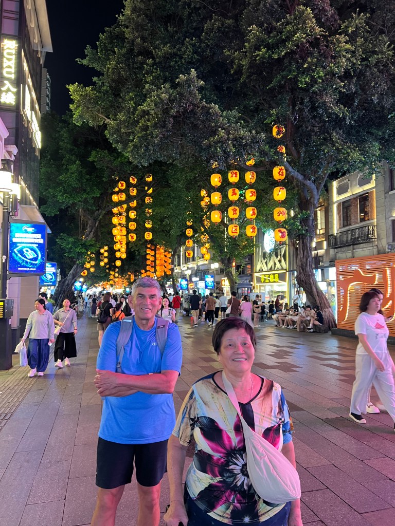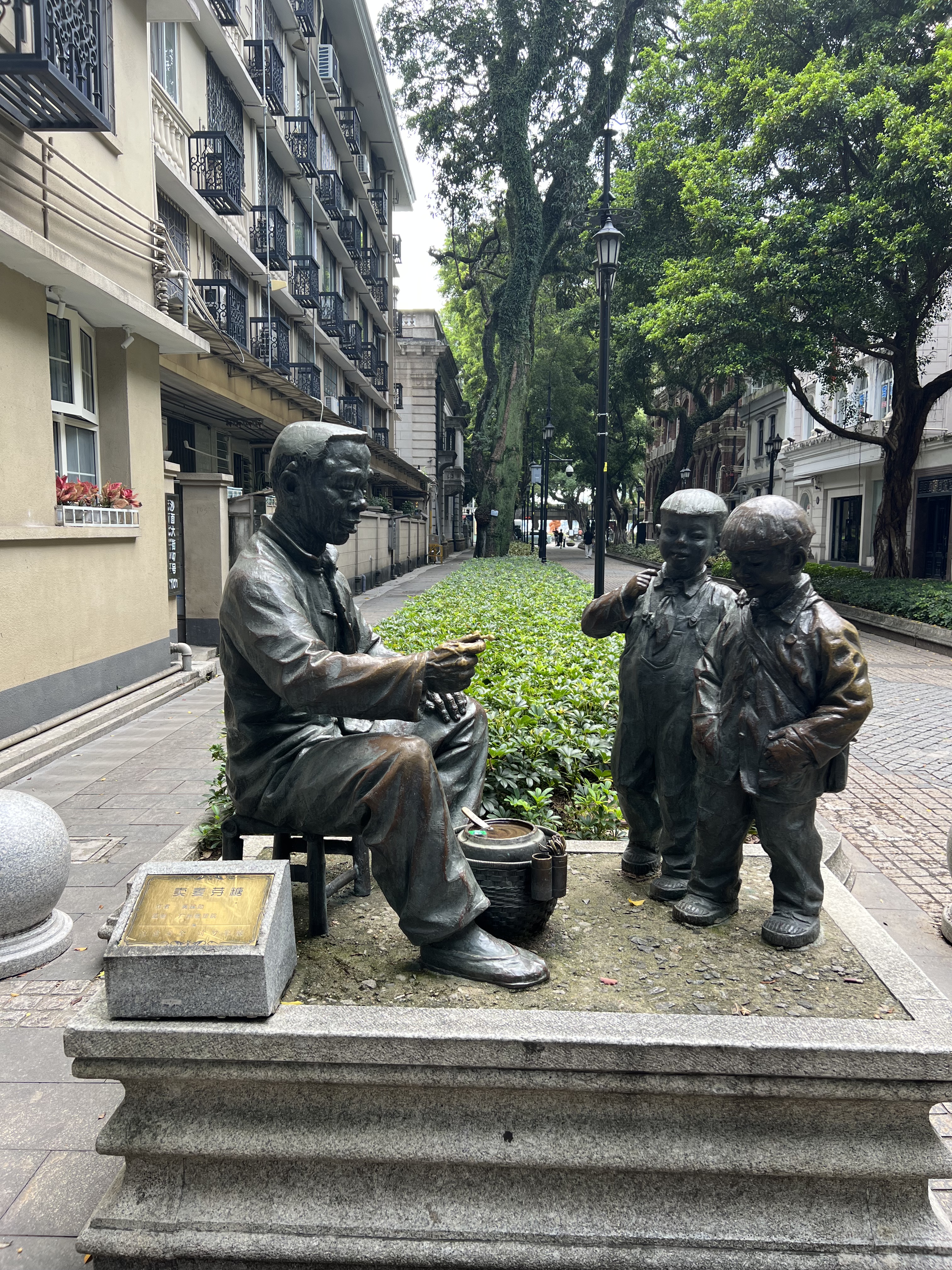 After another great yum cha we make our way to Shangxiajue street, a long, wide, pedestrian boulevard flanked by old trees and buildings that represent Guangzhou’s colonial heritage. The many statues we encounter are another feature of this street. The pace is unhurried, which suits me today. This place is well worth a visit, for both the history on display and as an interlude between more frenetic activity.
