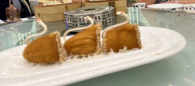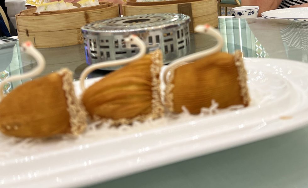 Until this morning Bock and I have been skirting the edges of a proper yum cha, sampling one or two dishes here and there in humble eateries. Today, our yum cha is full blown. In a lavish, spacious venue we go for broke, ordering enough to make it more like a celebration than a perfunctory breakfast. At between the equivalent of seven to nine AUD a dish, the cost of our meal keeps rising as we order more and more. Everything has a hallmark of quality. Fresh, tasty, some bordering on works of art, none a disappointment, breakfast this morning is going to be hard to beat.